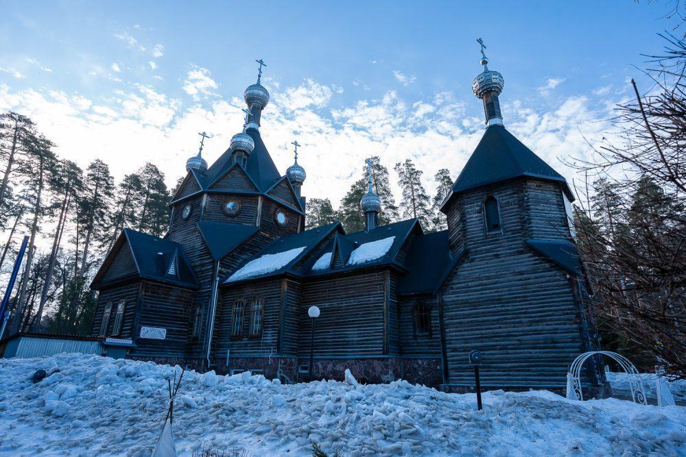 В 1991 г. жители мкр Ахуны выступили с инициативой открытия в этом районе церкви или молитвенного дома. На предложение откликнулся начальник областного лесхоза Владимир Иванович Березин. 22 мая 1991 г. было освящено место под храм и установлен деревянный крест, в 1992 г. архитектор Дмитрий Александрович Борунов разработал проект пятикупольного деревянного храма, и строительство началось.