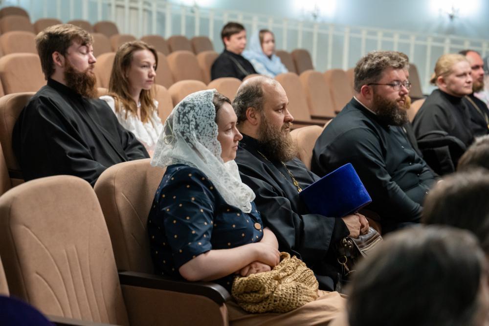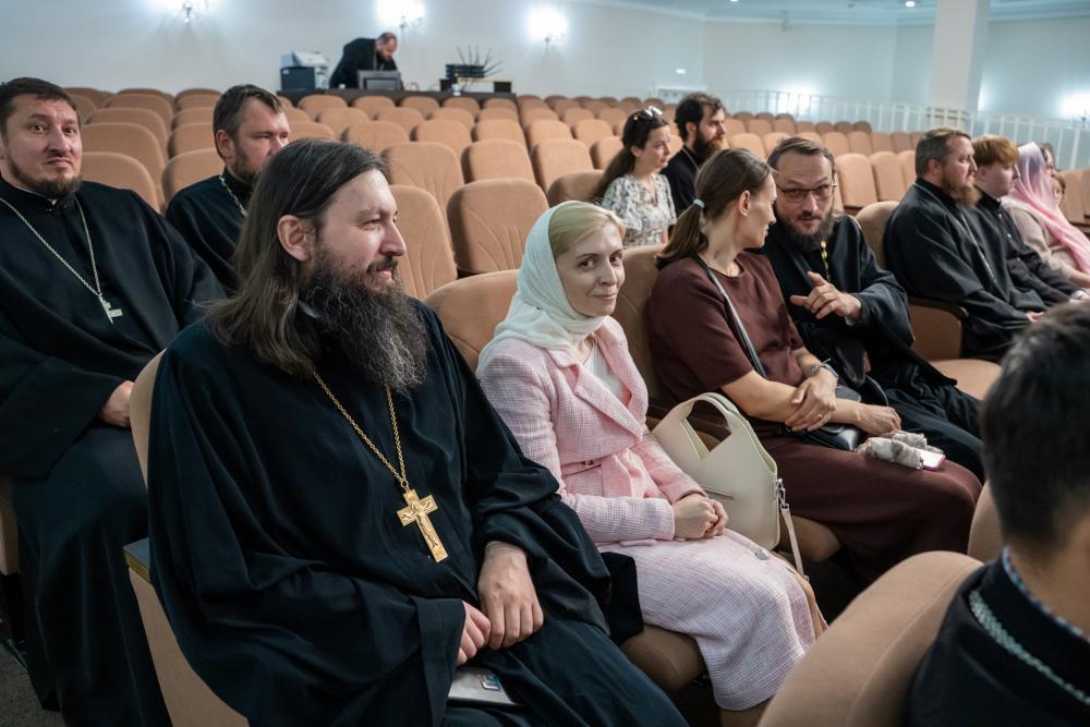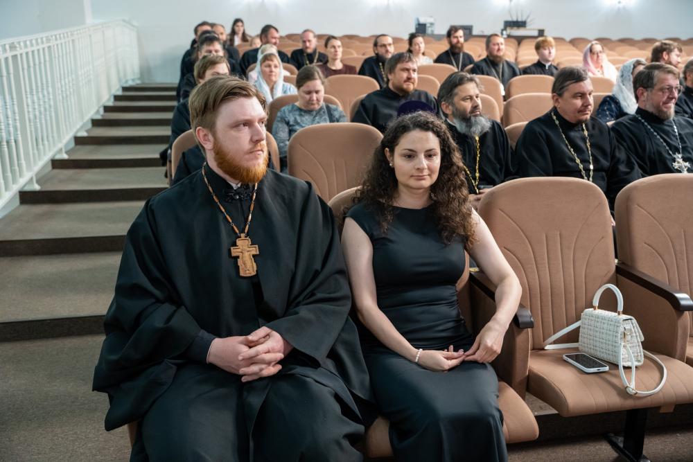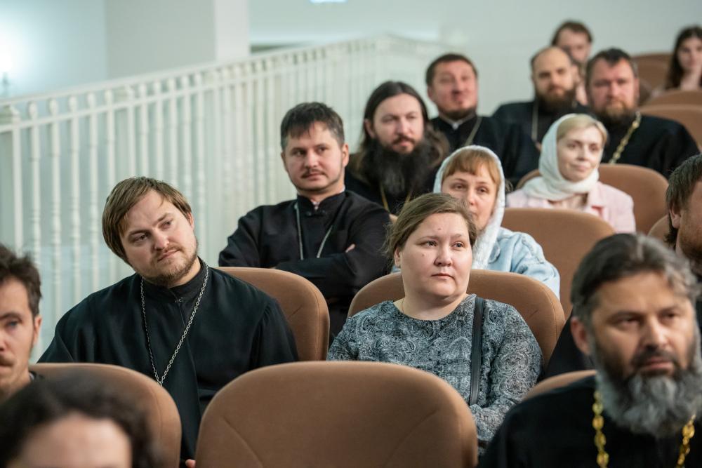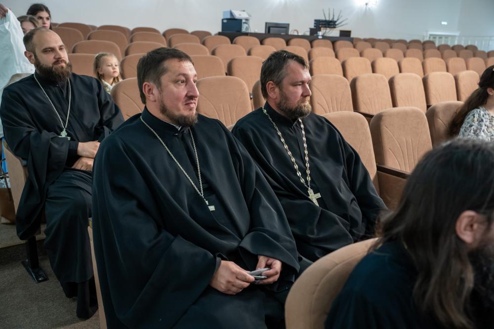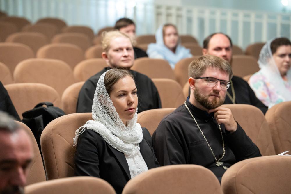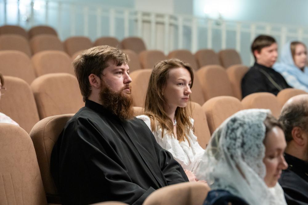 Затем диакон Иоанн побеседовал со священнослужителями и их женами на тему семейных отношений. Говорили о роли мужа и жены в православной семье, о том, как преодолевать конфликты и избегать их, как справляться с кризисами семейной жизни. Тема вызвала активную дискуссию.