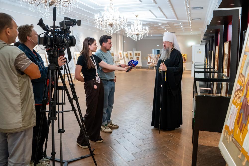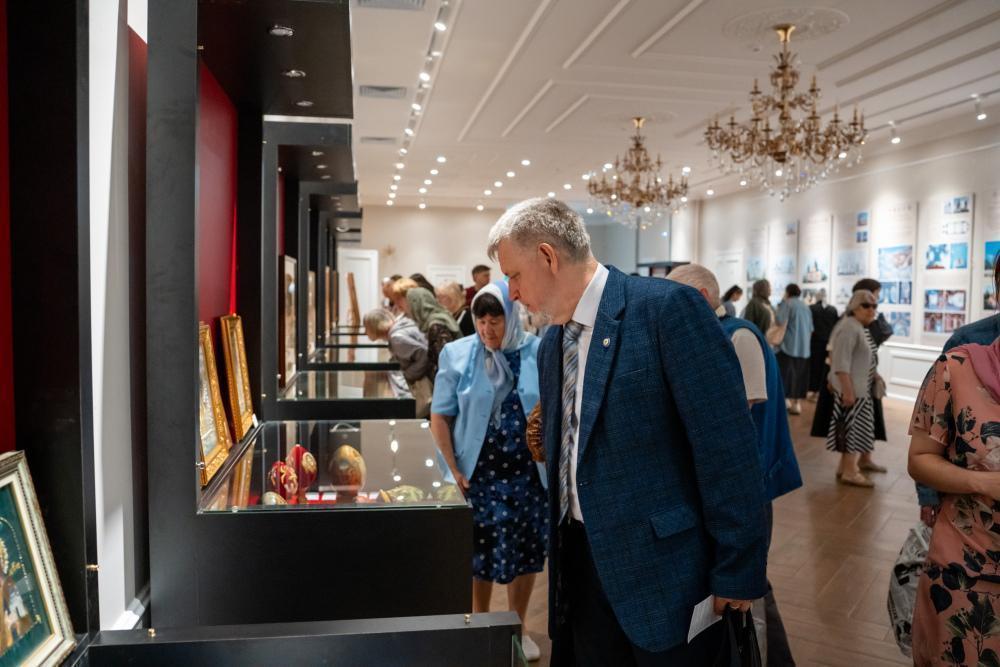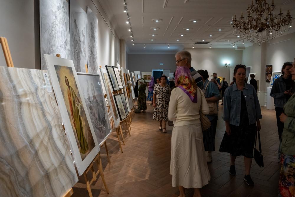 После показа киноленты все желающие могли осмотреть экспозицию современного церковного искусства в фойе духовно-просветительского центра, где были представлены иконопись, золотое шитье, лаковые миниатюры и эскизы монументальной живописи Спасского собора, в том числе в исполнении пензенских авторов.