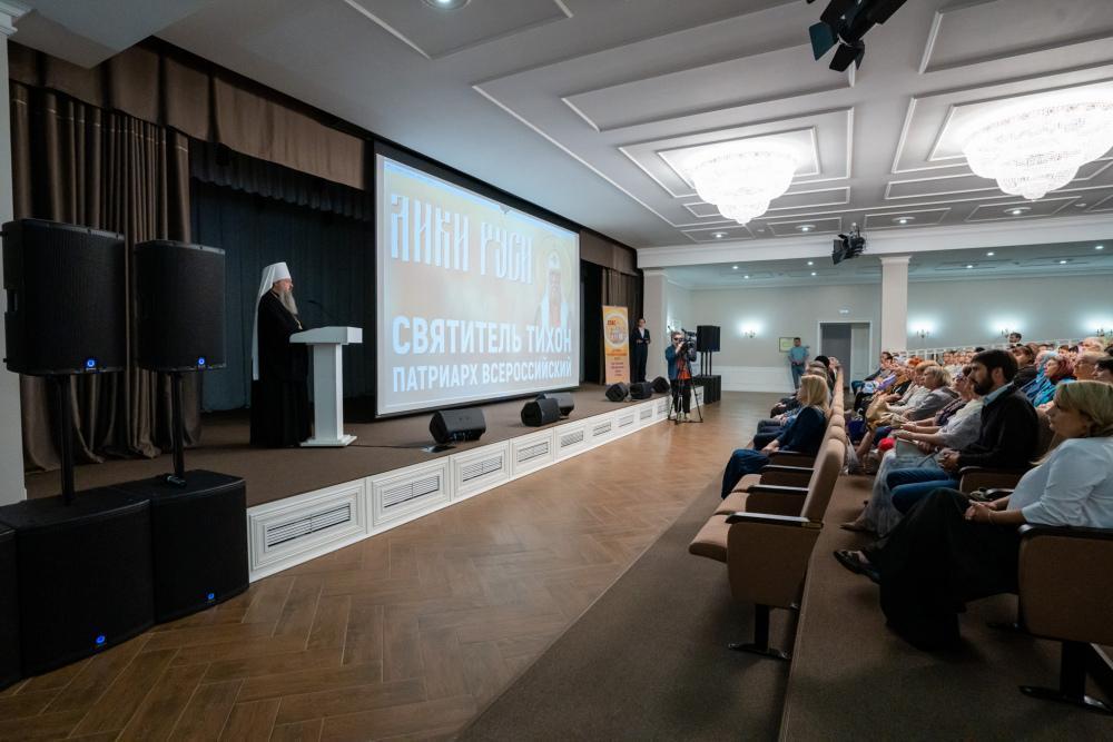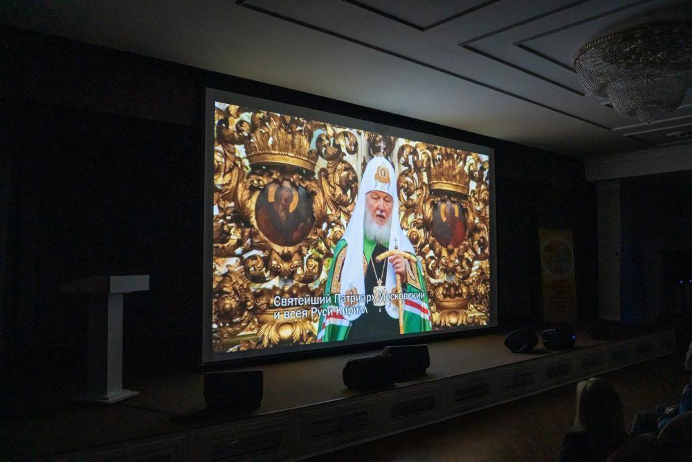 С приветственным словом к присутствующим обратился Высокопреосвященный владыка Серафим: «В сотрудничестве с телеканалом “Союз” мы проводим уже третий кинопоказ. Если два предыдущих были связаны с нашими местными святыми, то сегодня мы будем смотреть фильм о святителе Тихоне, столетие со дня кончины которого мы отмечаем в текущем году. Это очень важное событие в жизни Русской Православной Церкви и в жизни нашего города, поскольку уже 25 июня мощи святителя Тихона прибудут в Пензу. Программа принесения мощей святителя Тихона, охватывающая 90 городов России и Беларуси, осуществляется по благословению Святейшего Патриарха Московского и всея Руси Кирилла. Я думаю, что сейчас очень важно воскресить память о святителе Тихоне. И благодаря фильму может быть кто-то впервые услышит об этом святом и узнает о его жизненном подвиге».
