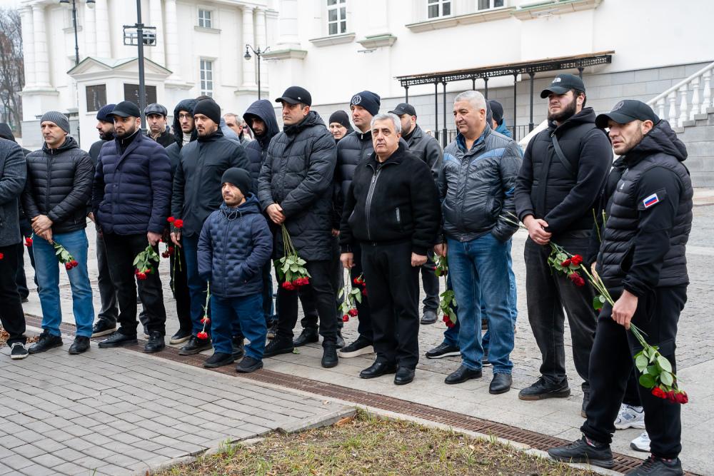 Почтить память погибших собрались представители армянской диаспоры во главе с Сеником Варшамовичем Саакяном, председателем правления Региональной армянской национально-культурной автономии и Пензенского регионального отделения Союза армян России.