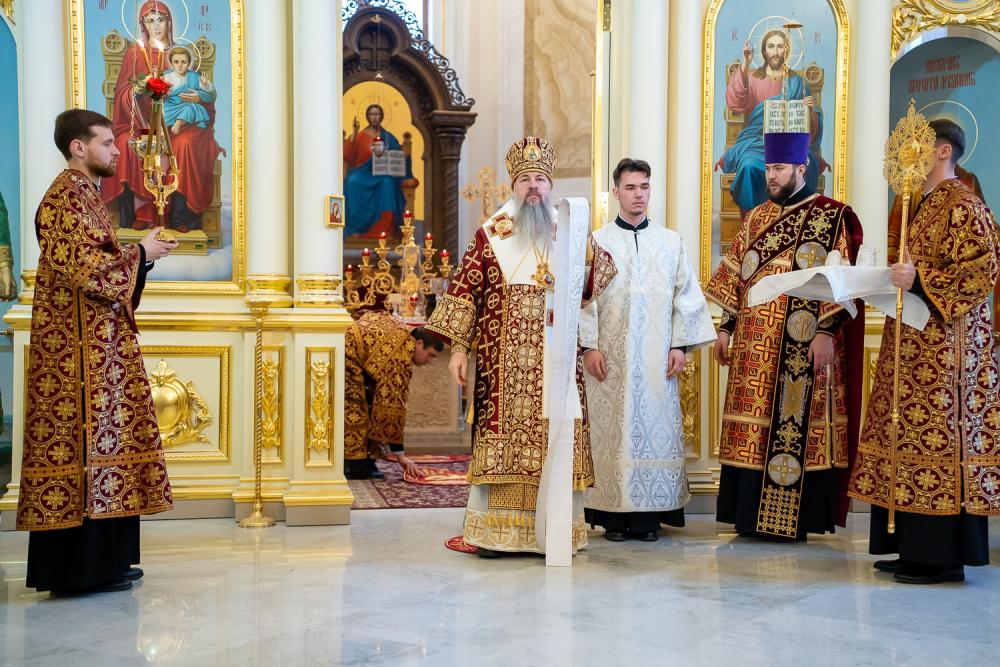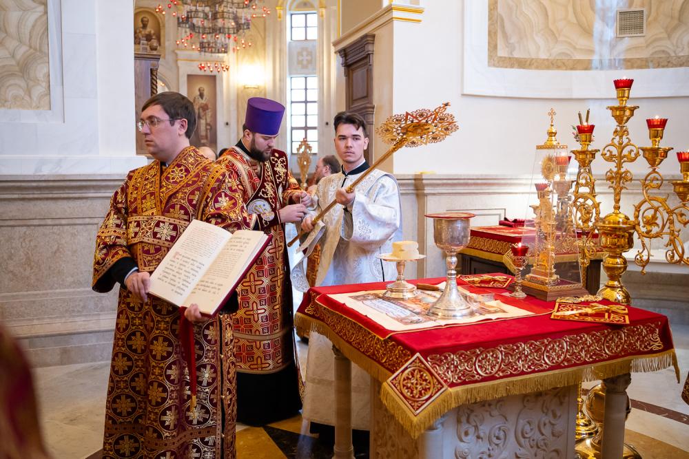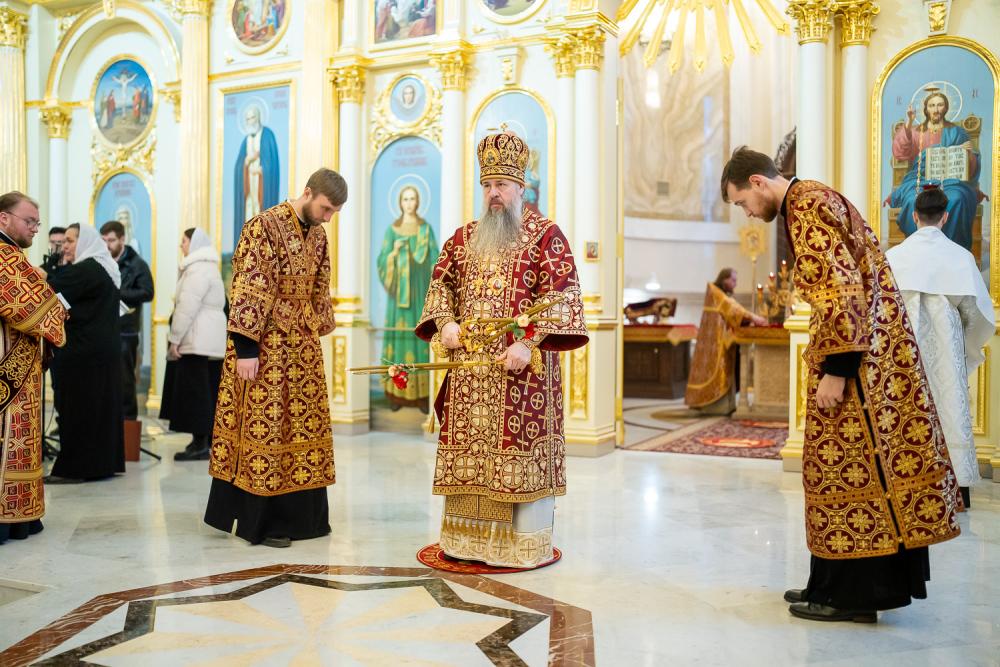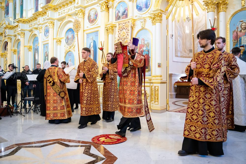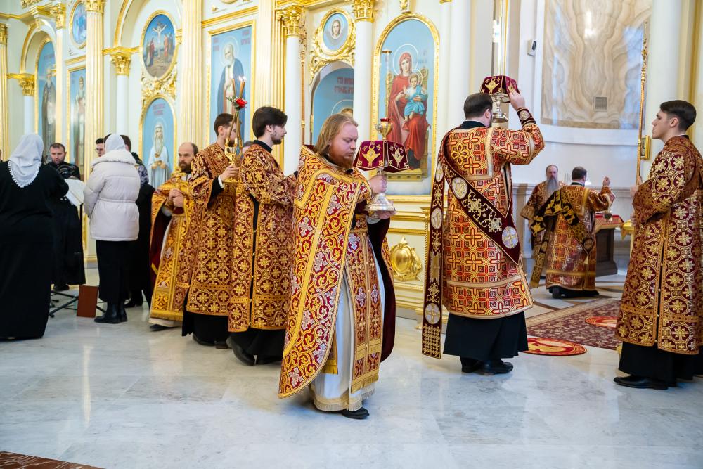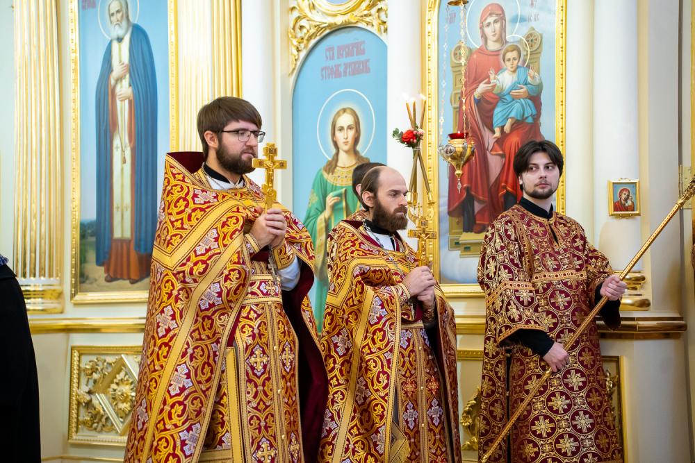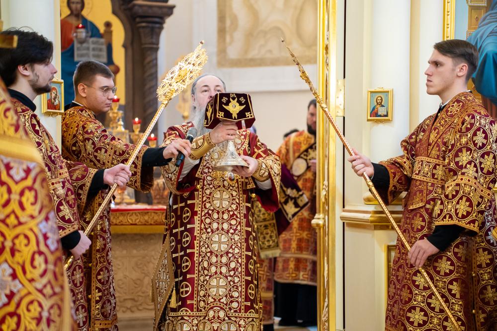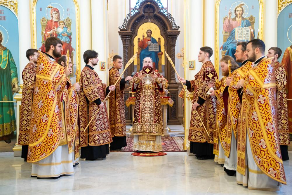 Его Высокопреосвященству сослужили ключарь Спасского кафедрального собора иерей Николай Батищев, протоиерей Владимир Ольхов, иереи Александр Черных, Евгений Климчев и Георгий Насонов, диаконы Богдан Яворский, Кирилл Вейго, Иоанн Сидоров и Георгий Дементьев.