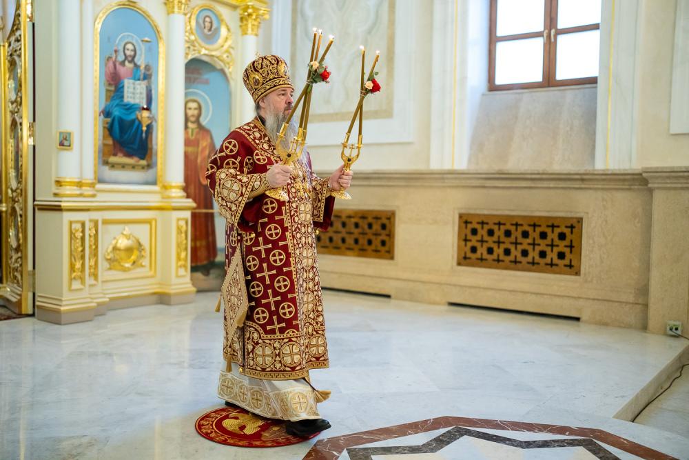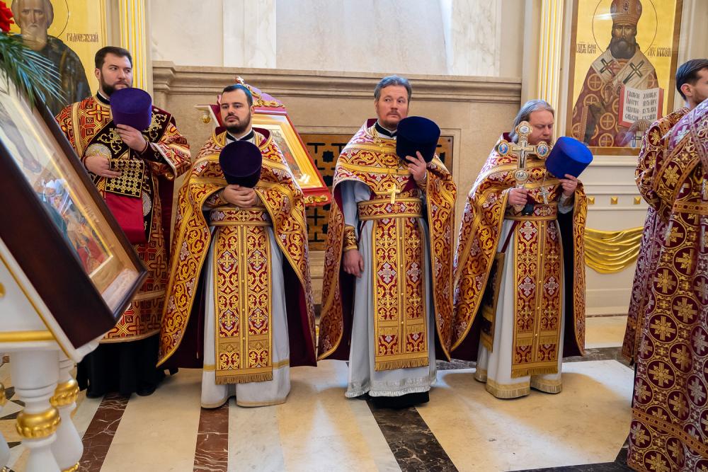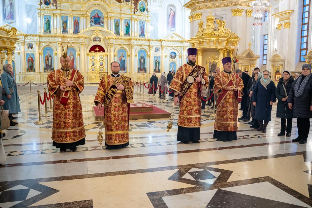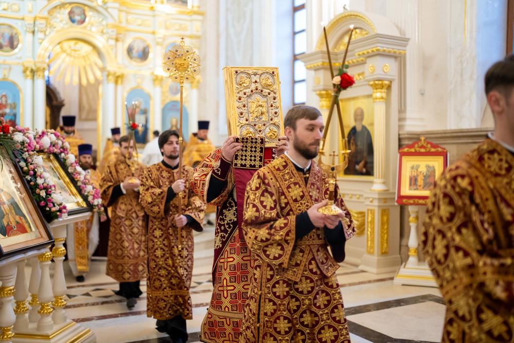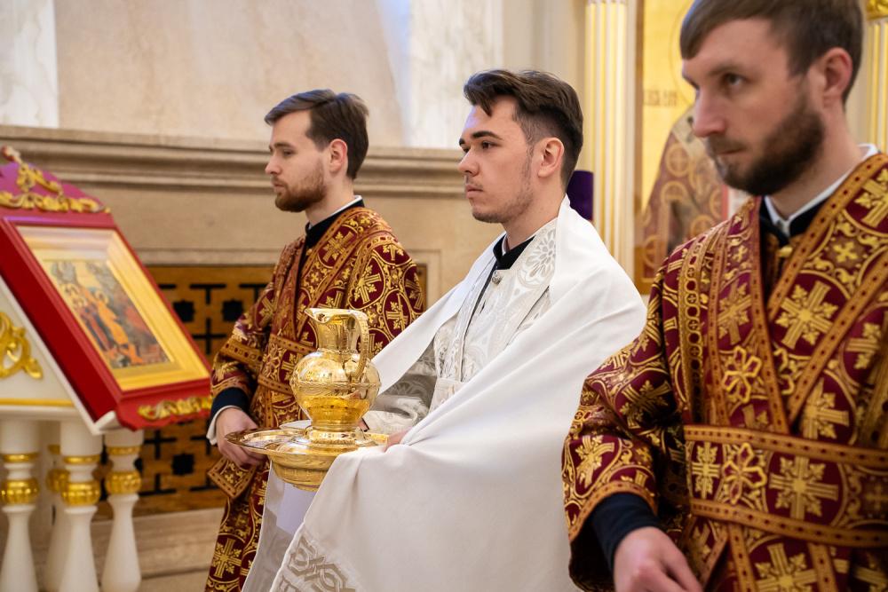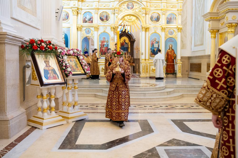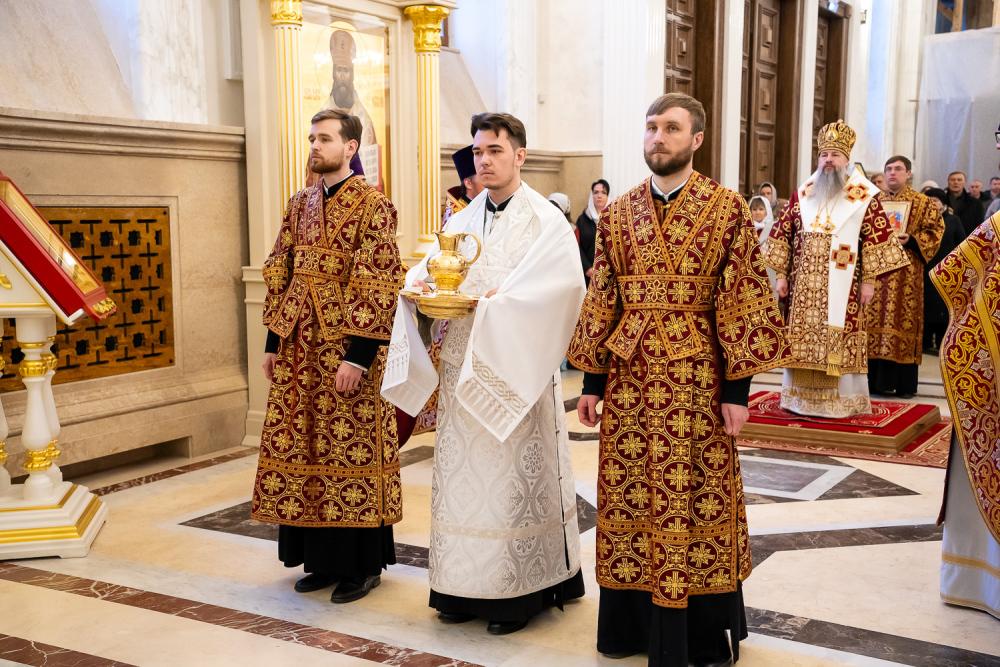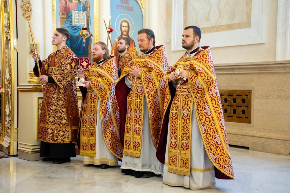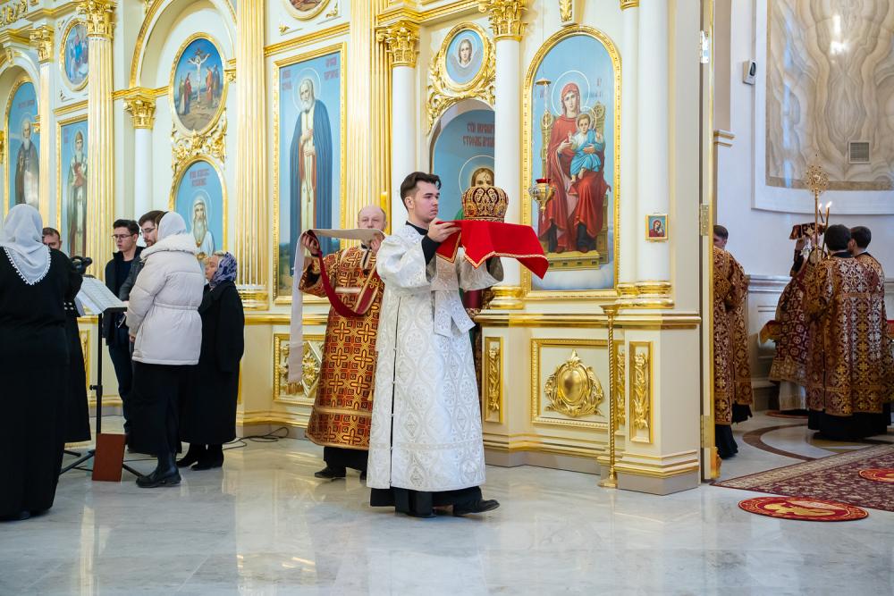 Его Высокопреосвященству сослужили ключарь Спасского кафедрального собора иерей Николай Батищев, протоиерей Владимир Ольхов, иереи Александр Черных, Евгений Климчев и Георгий Насонов, диаконы Богдан Яворский, Кирилл Вейго, Иоанн Сидоров и Георгий Дементьев.