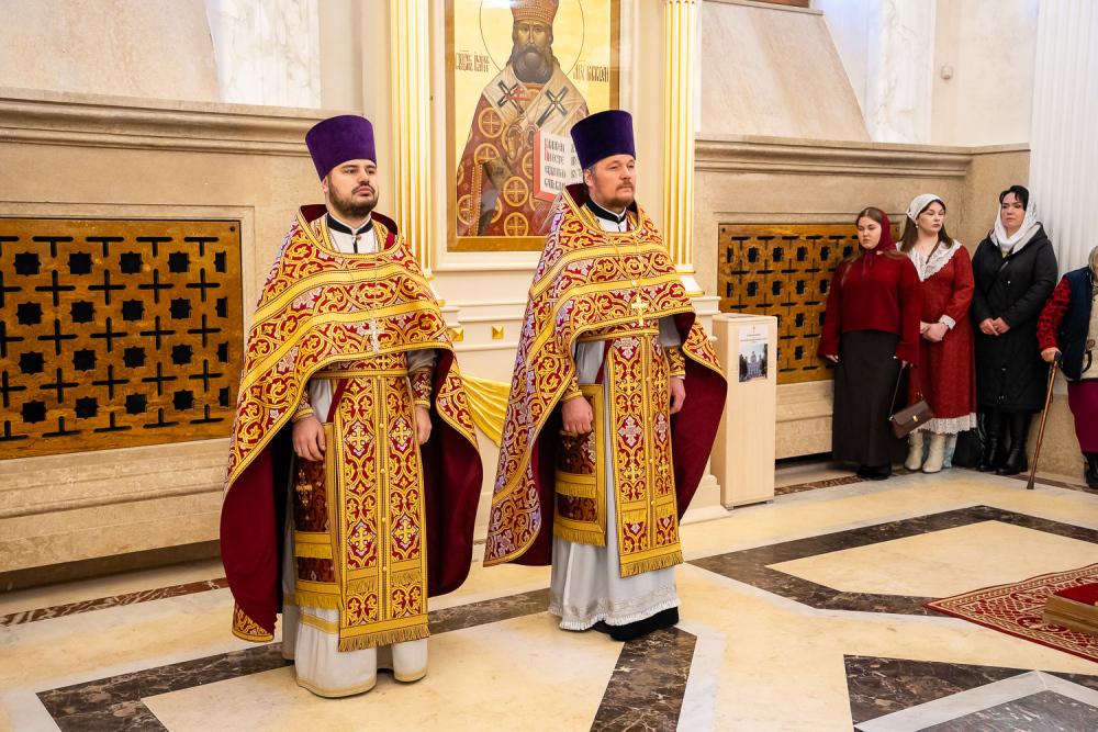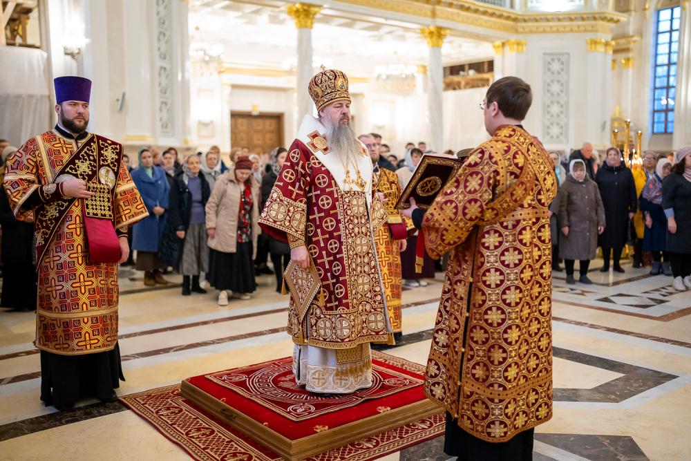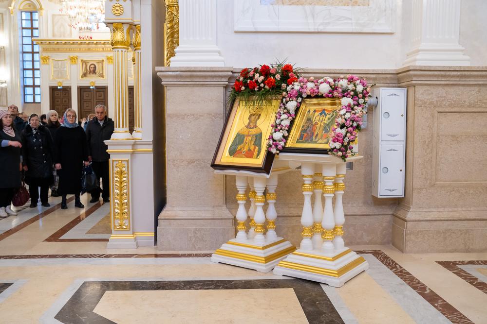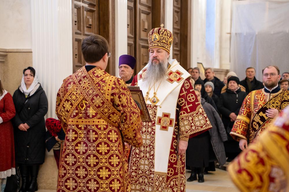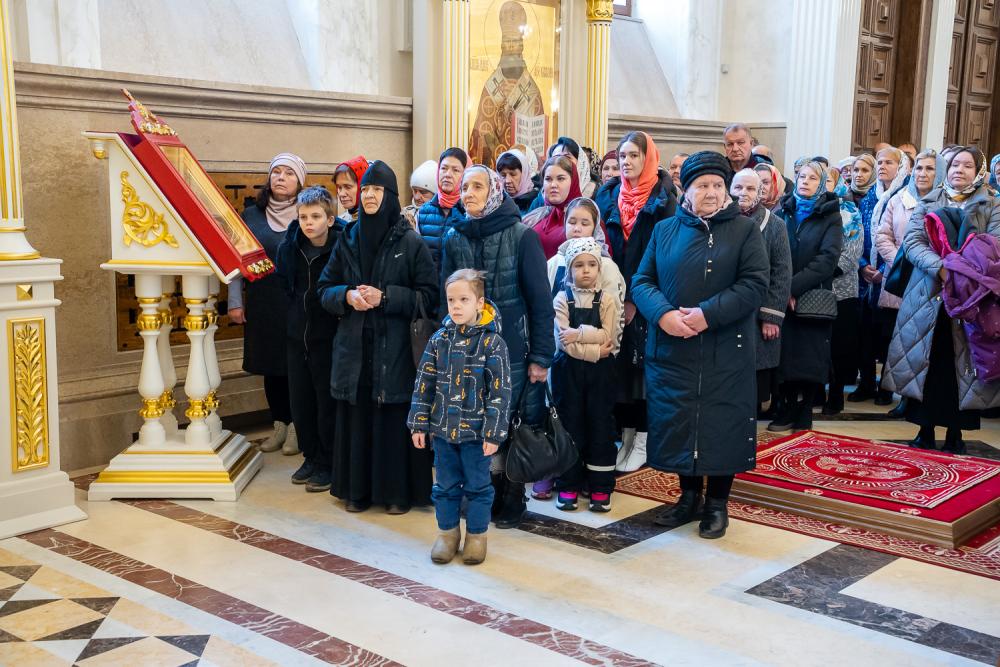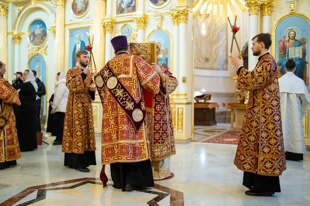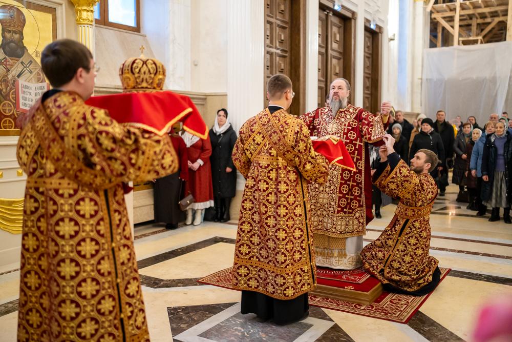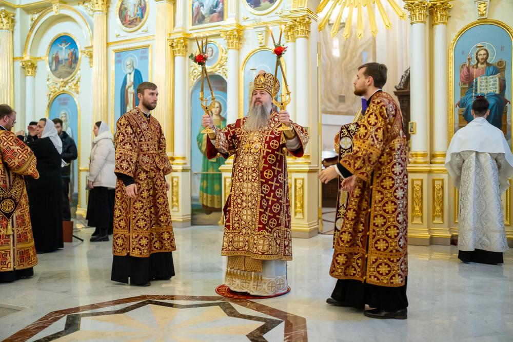 Завершая богослужение, Высокопреосвященный владыка Серафим поздравил паству с престольным праздником Спасского собора: «В эти постные дни, когда мы стараемся соблюдать Рождественский пост и восходить поприщем покаяния, жизнь святой великомученицы Екатерины является одним из самых ободряющих примеров.