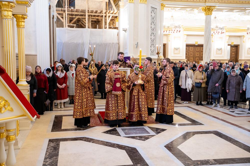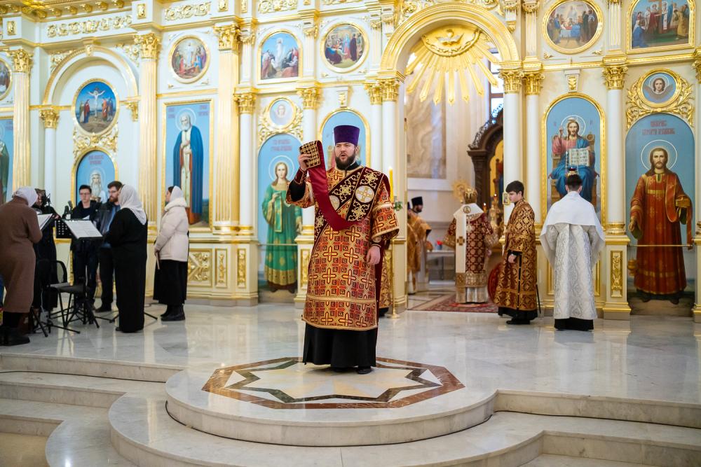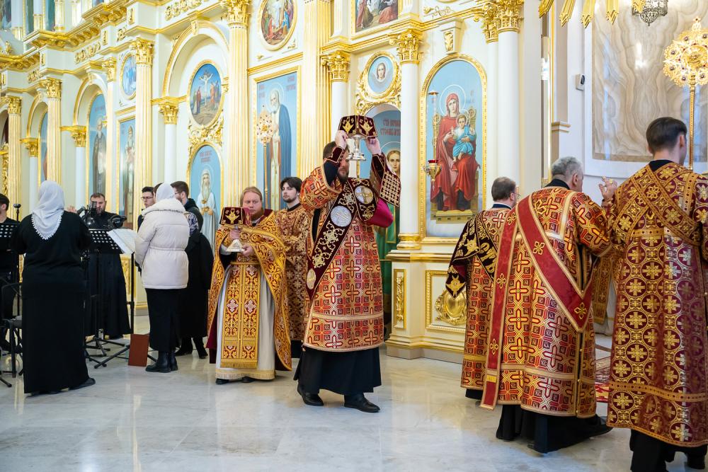 Богослужебные песнопения исполнил хор Спасского кафедрального собора под управлением регента Ольги Горшеневой.