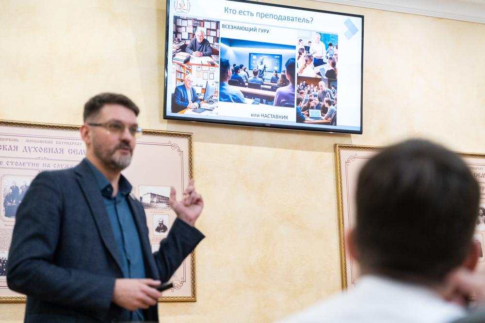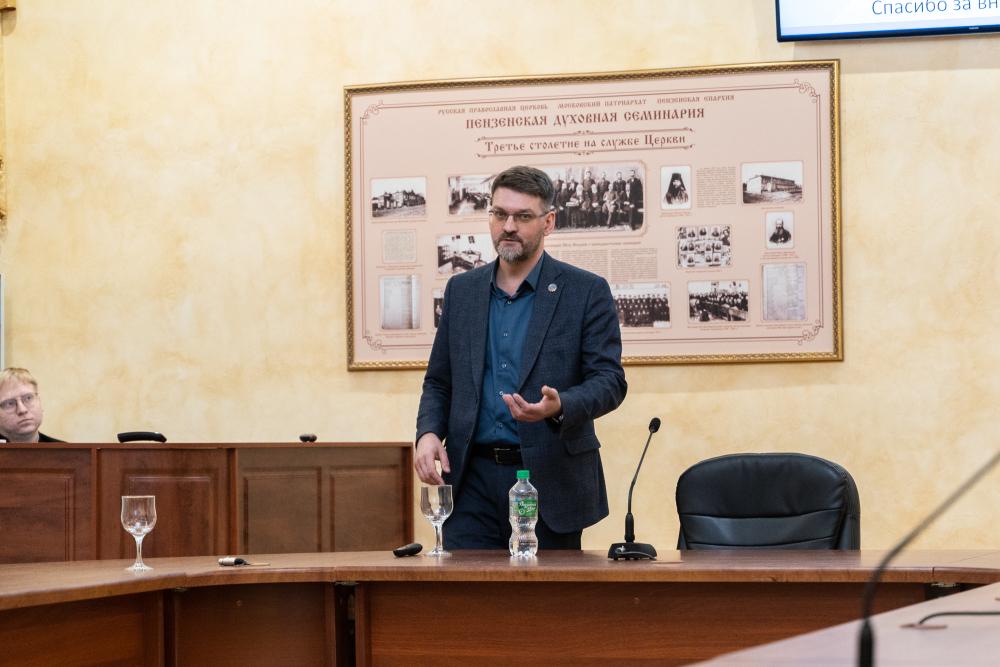 В рамках секции «Цифровая культура и формирование личности: возможности и риски ИИ» в Пензенской духовной семинарии состоялась встреча с проректором по цифровизации Пензенского государственного университета Александром Викторовичем Антоновым.