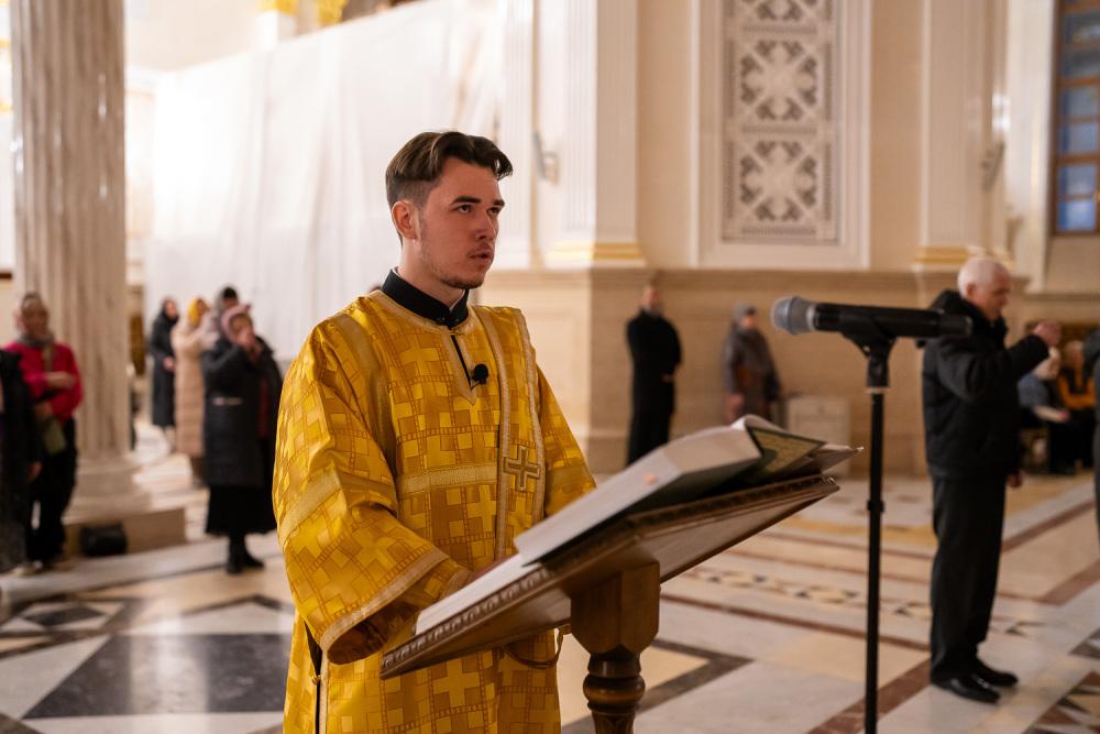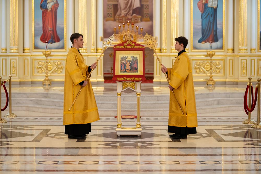 Богослужебные песнопения исполнил хор Спасского кафедрального собора под управлением регента Ольги Горшеневой.