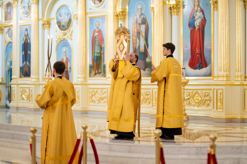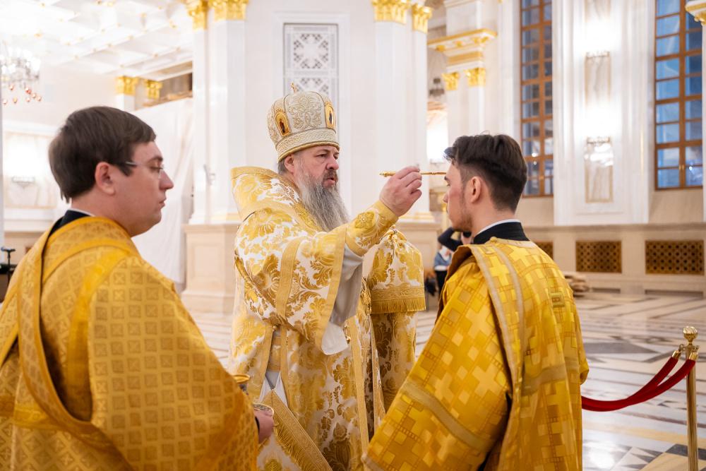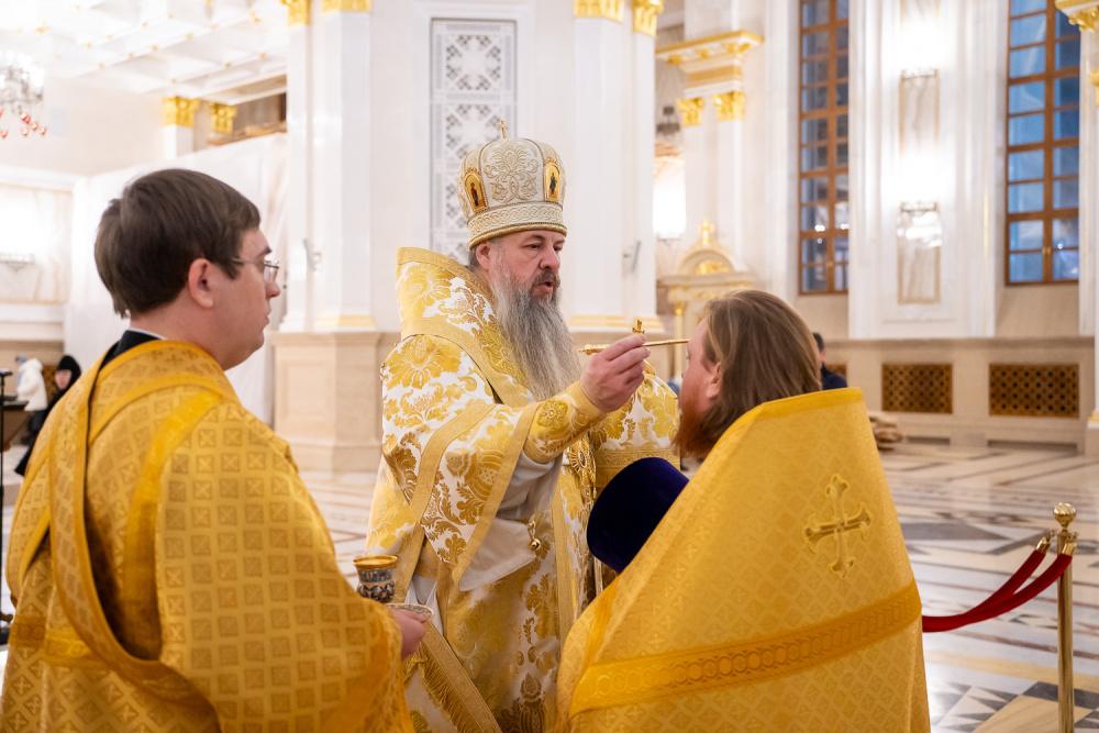 Его Высокопреосвященству сослужили ключарь Спасского кафедрального собора иерей Николай Батищев, протоиерей Владимир Ольхов, иерей Георгий Насонов, диаконы Богдан Яворский, Кирилл Вейго, Иоанн Сидоров, Георгий Дементьев и Никита Черных.