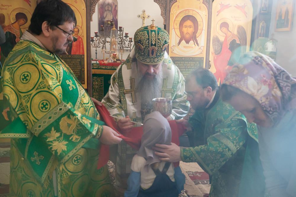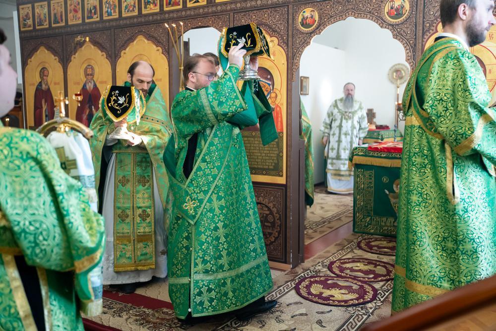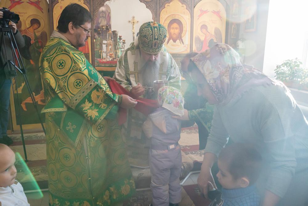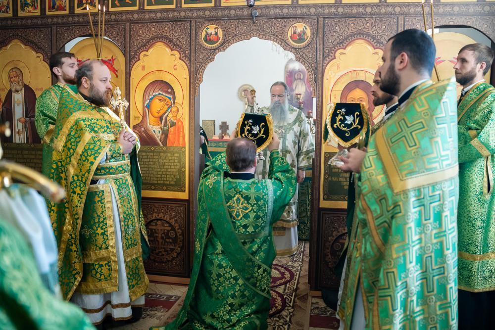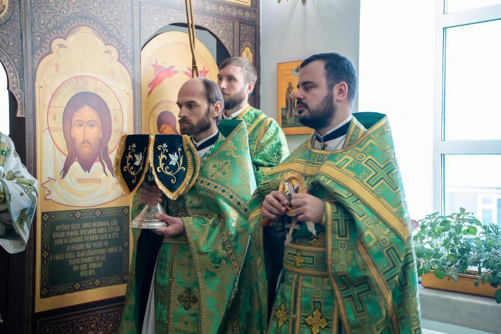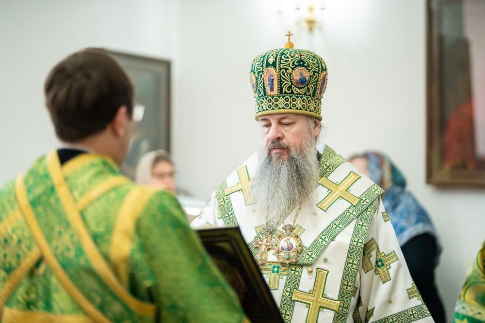 Его Высокопреосвященству сослужили протоиерей Владимир Ольхов, настоятель церкви Рождества Пресвятой Богородицы с. Канаевка иерей Даниил Добролюбов, иерей Георгий Насонов, диакон Кирилл Вейго и протодиакон Константин Кузьминых.