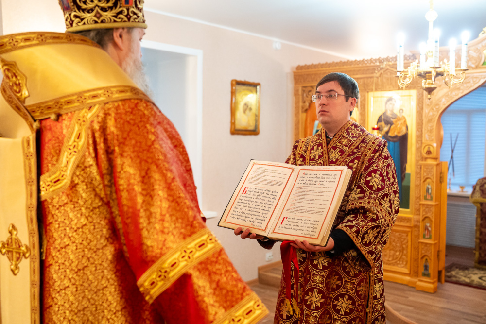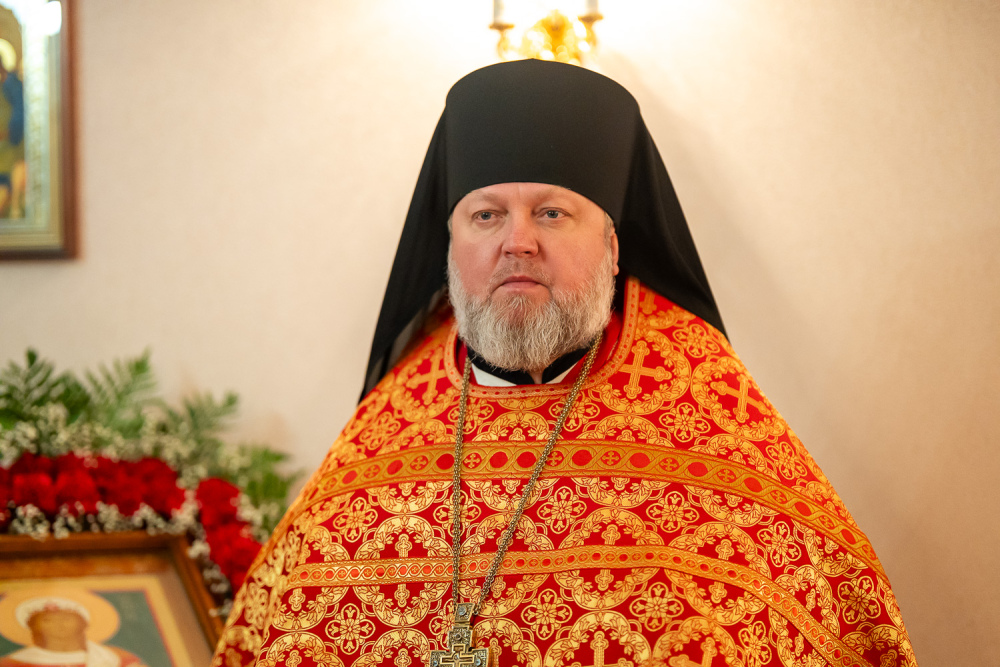 После этого правящий архипастырь поздравил иеромонаха Феодора (Володина) с грядущим пятидесятилетним юбилеем и наградил его медалью священноисповедника Иоанна Оленевского III степени.