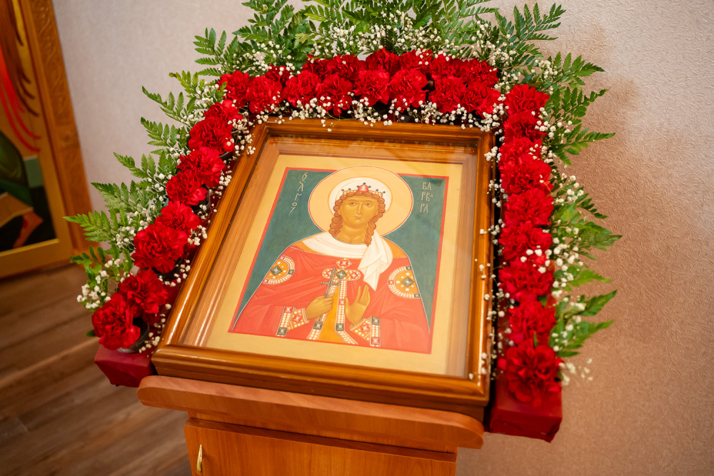 По отпусте литургии было совершено славление перед образом великомученицы Варвары и провозглашено многолетие.