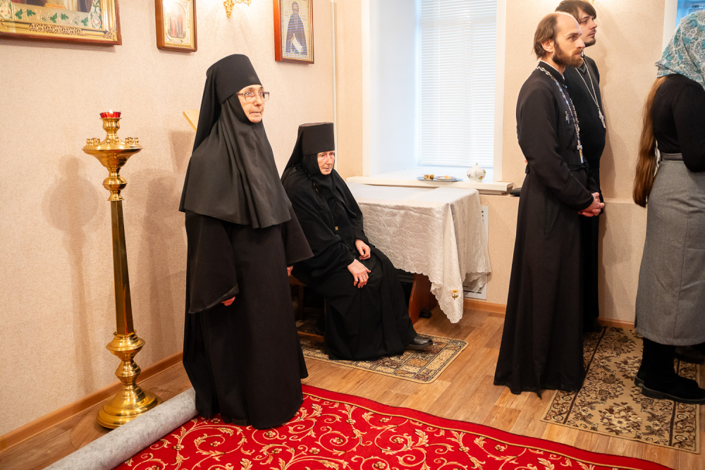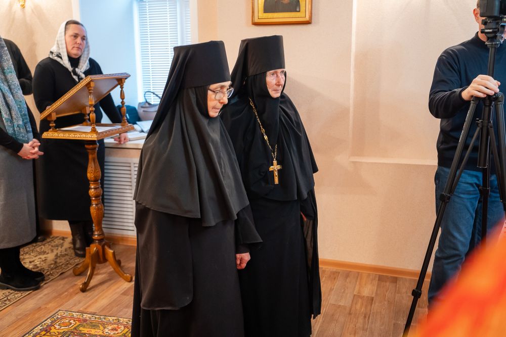 За литургией молились игумения монастыря Варвара (Трофимова) и сестры обители.