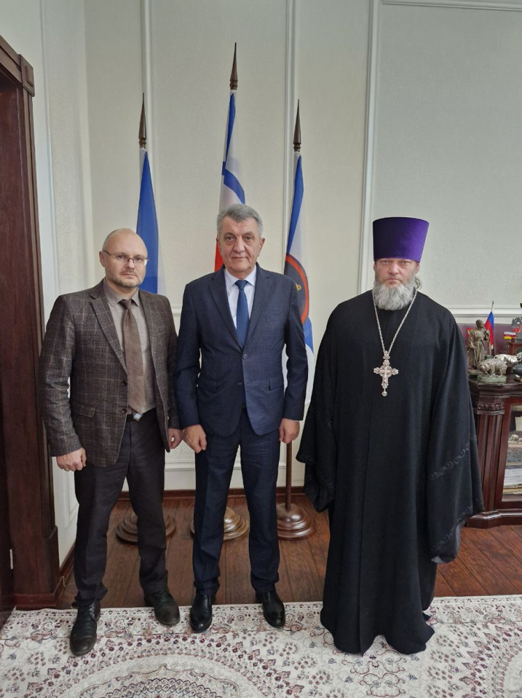 Кроме того, состоялась встреча с ректором Северо-Осетинского государственного университета, доктором экономических наук, доцентом Огоевым Аланом Урузмаговичем. Участники встречи обсудили общие стратегии взаимодействия Пензенской духовной семинарии и Северо-Осетинского государственного университета для дальнейшего проведения совместных мероприятий.