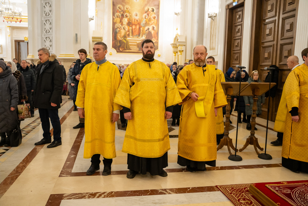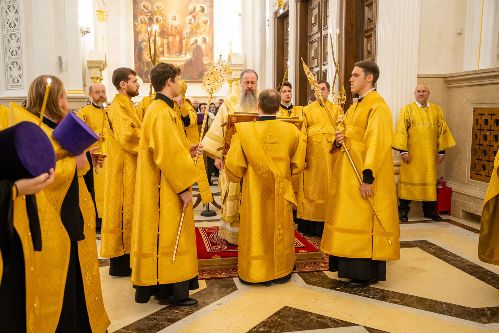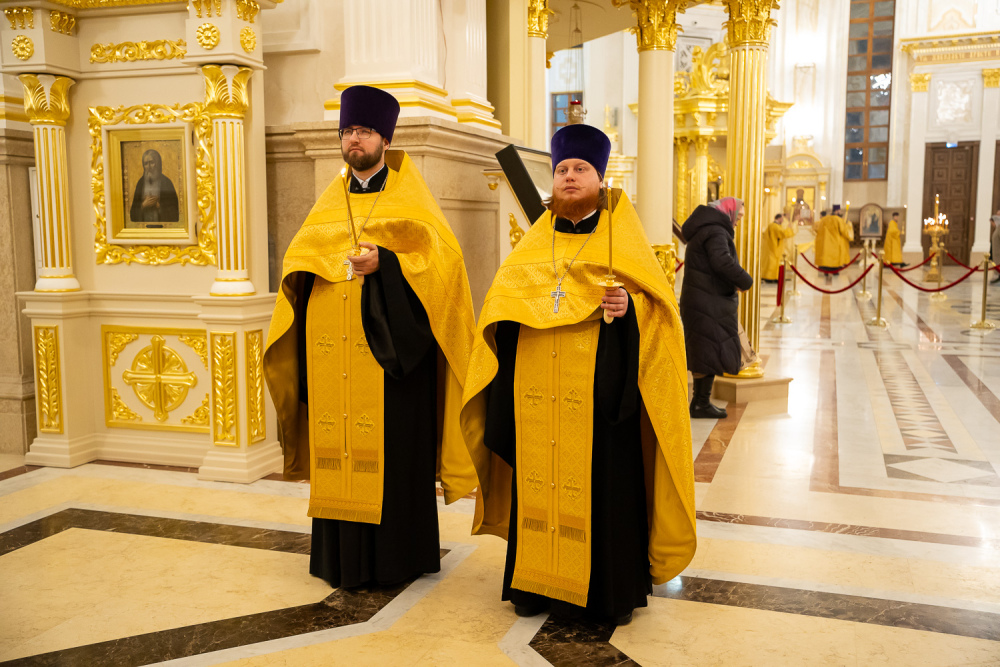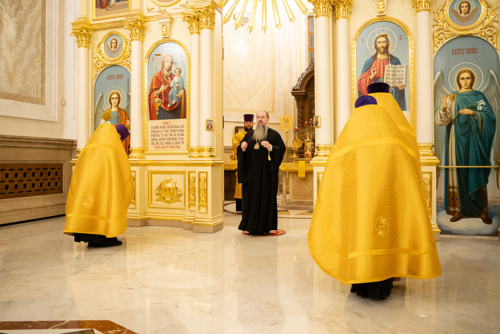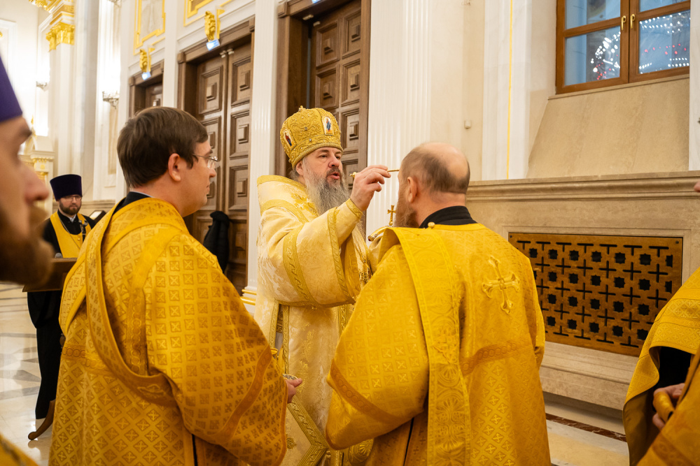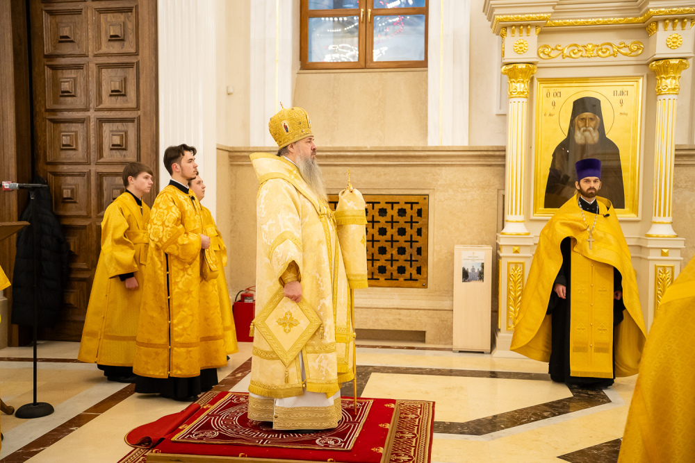 Его Высокопреосвященству сослужили ключарь Спасского кафедрального собора иерей Николай Батищев, протоиерей Владимир Ольхов, иереи Евгений Климчев и Георгий Насонов, диаконы Богдан Яворский, Кирилл Вейго, Георгий Дементьев и Никита Черных.