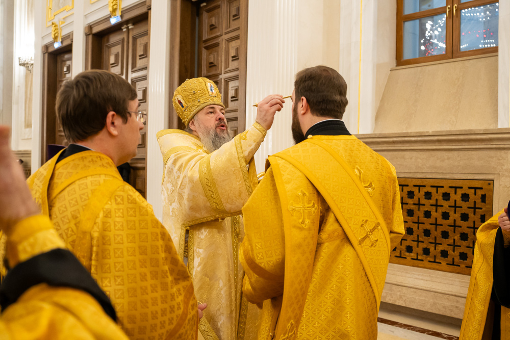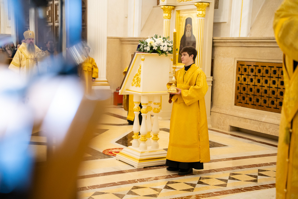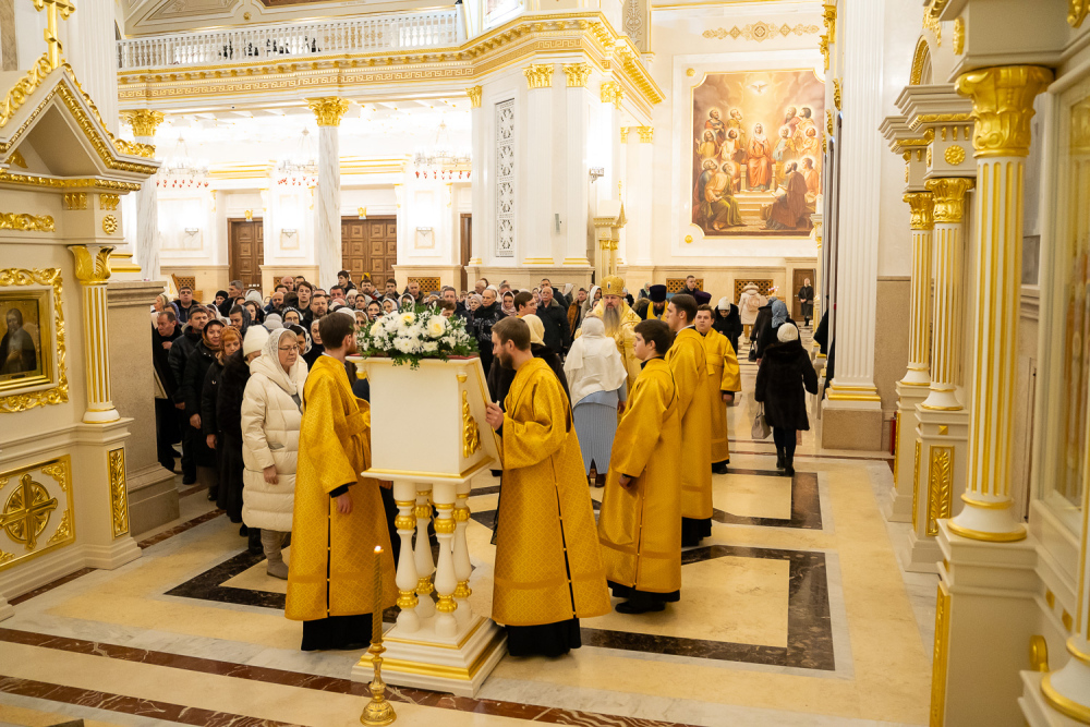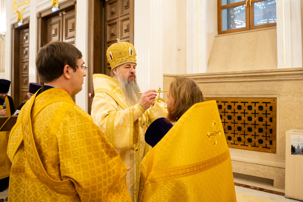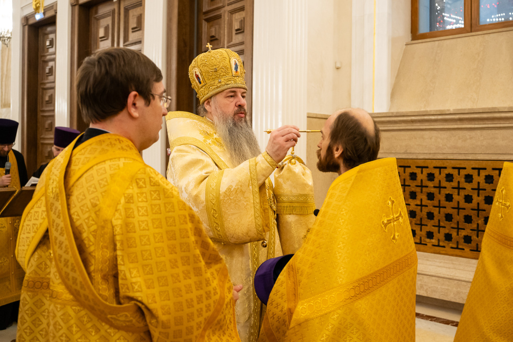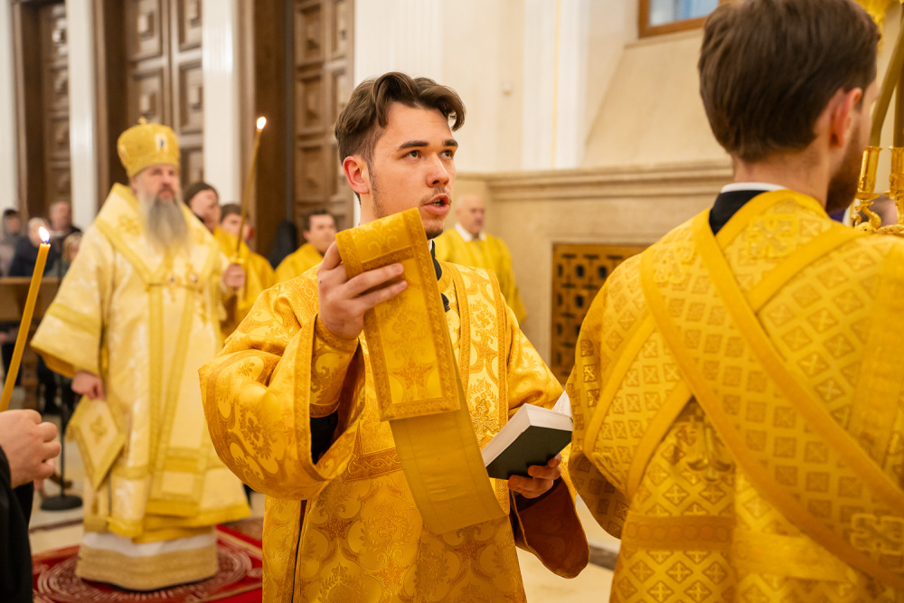 Его Высокопреосвященству сослужили ключарь Спасского кафедрального собора иерей Николай Батищев, протоиерей Владимир Ольхов, иереи Евгений Климчев и Георгий Насонов, диаконы Богдан Яворский, Кирилл Вейго, Георгий Дементьев и Никита Черных.