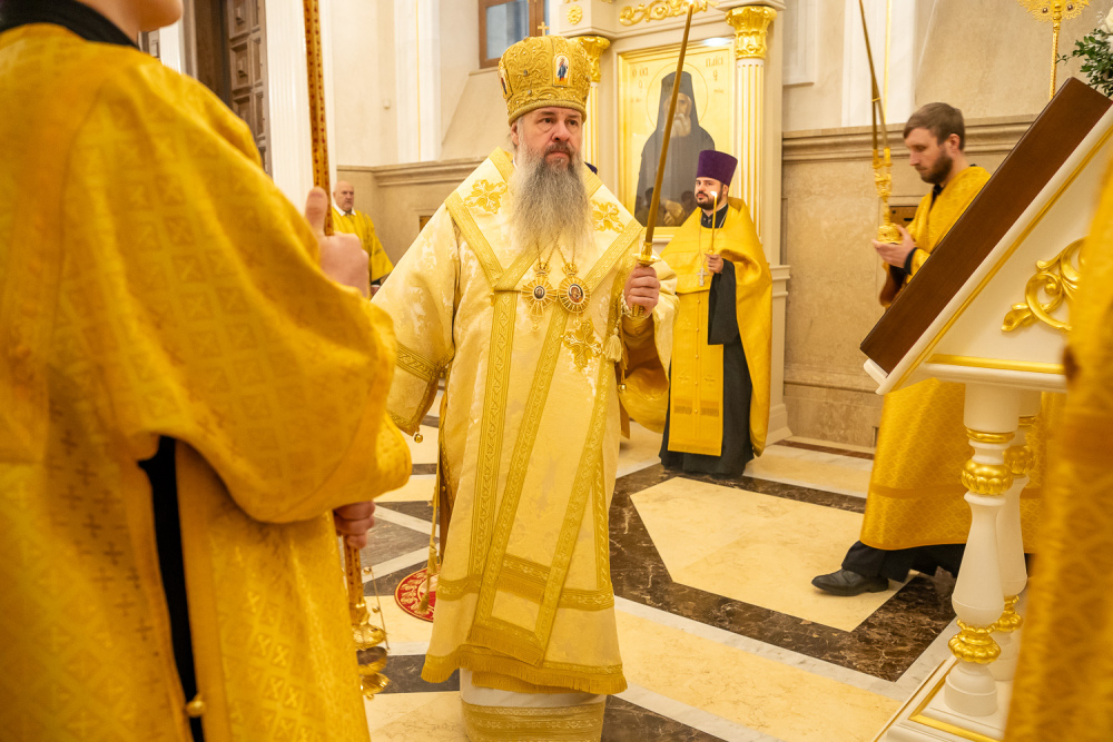 В канун дня памяти святителя Спиридона Тримифунтского митрополит Серафим совершил полиелей в Спасском соборе