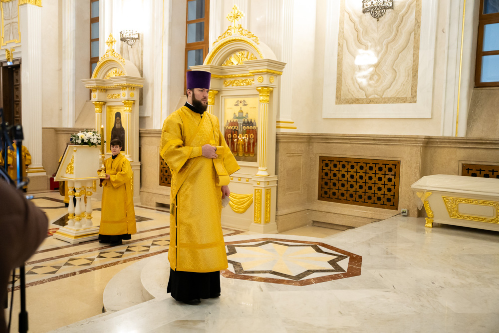 Богослужебные песнопения исполнил хор Спасского кафедрального собора под управлением регента Ольги Горшеневой.