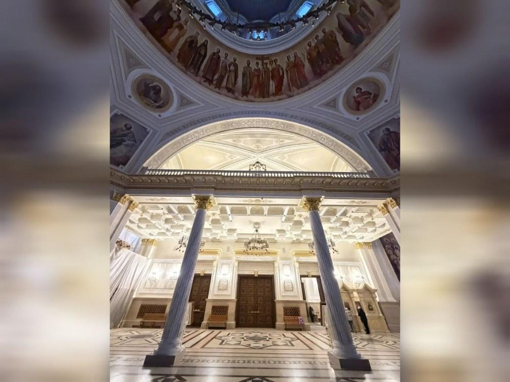 В настоящее время завершены работы по росписи пространственных объемов храма: трансепта, северо-западного компартимента, южного нефа, завершаются работы по росписи юго-западного компартимента.