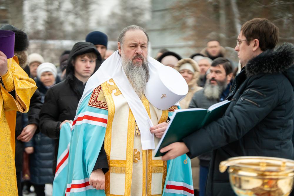 По окончании богослужения Высокопреосвященный владыка Серафим обратился к присутствующим: «Дорогие братья и сестры, поздравляю всех вас с престольным праздником этого строящегося храма — с днем памяти святителя Спиридона, епископа Тримифунтского, чудотворца. Сегодня мы присутствуем при очень важном и знаменательном событии – освящении накупольных крестов и куполов. Уверен, что в ближайшее время мы вместе с вами совершим здесь первое богослужение. И этот дом Божий будет обживаться, прежде всего, молитвой и горением человеческих сердец. Люди будут сюда приходить и со своей радостью, и со своей горестью, чтобы найти утешение и духовную поддержку, в том числе и у этого дивного угодника Божия — святителя Спиридона Тримифунтского. Поздравляю, дорогие мои, с этим замечательным событием. Храни всех вас Господь!»