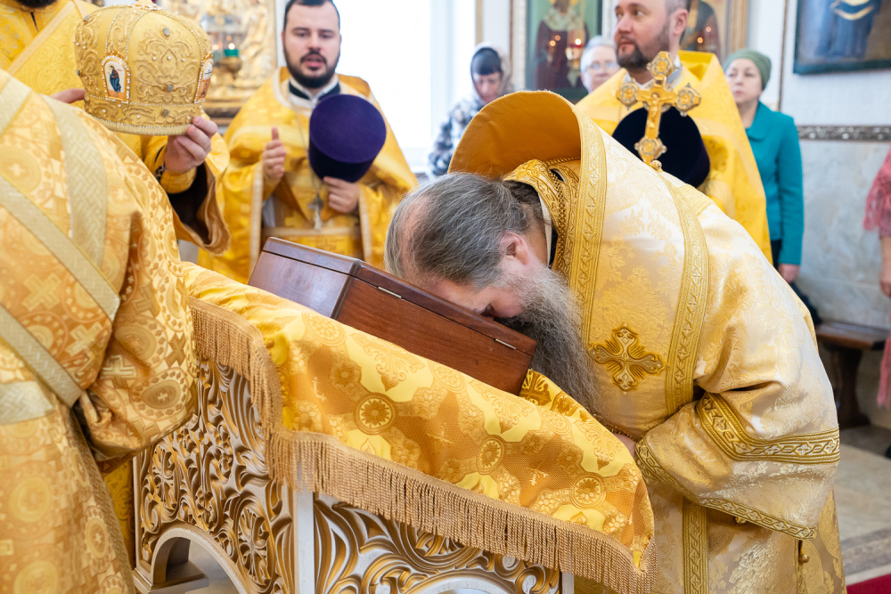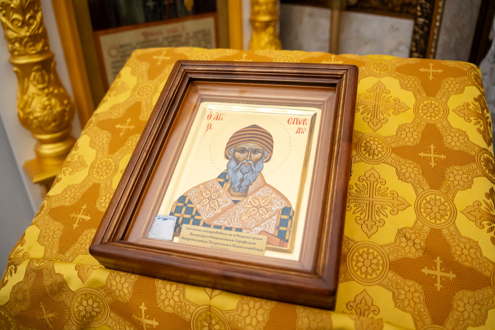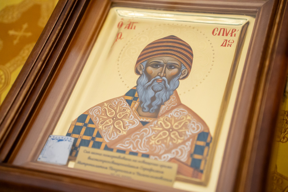 По отпусте литургии было совершено славление святителю Спиридону, епископу Тримифунтскому.