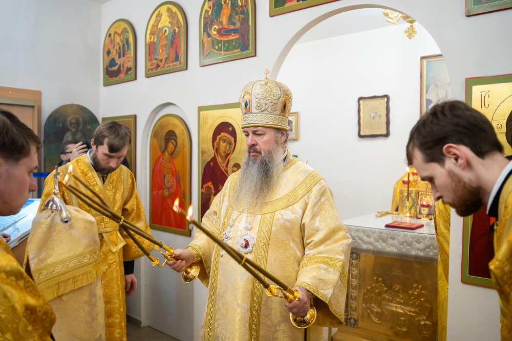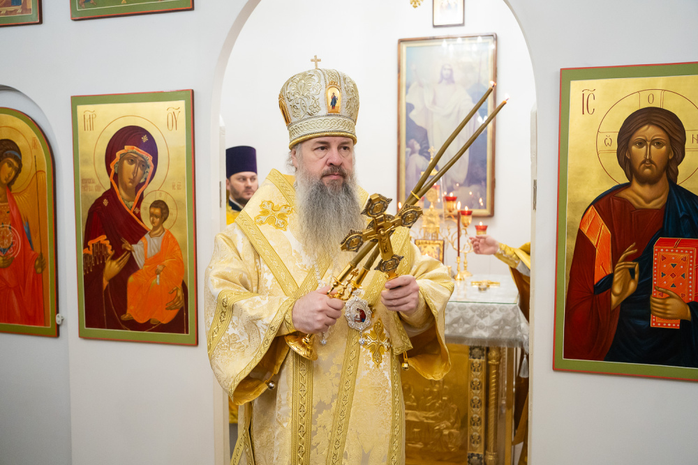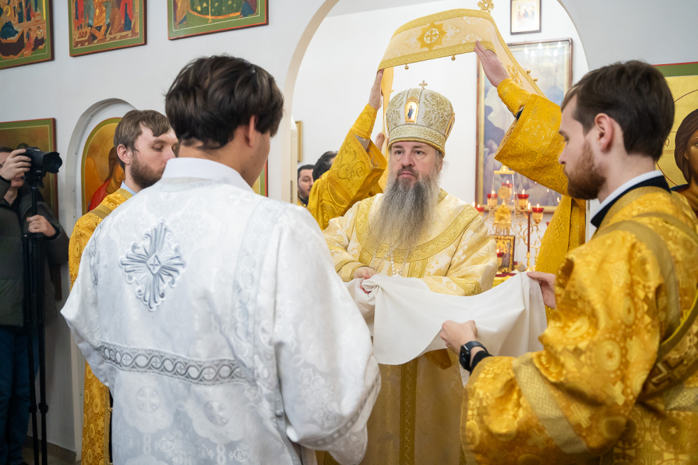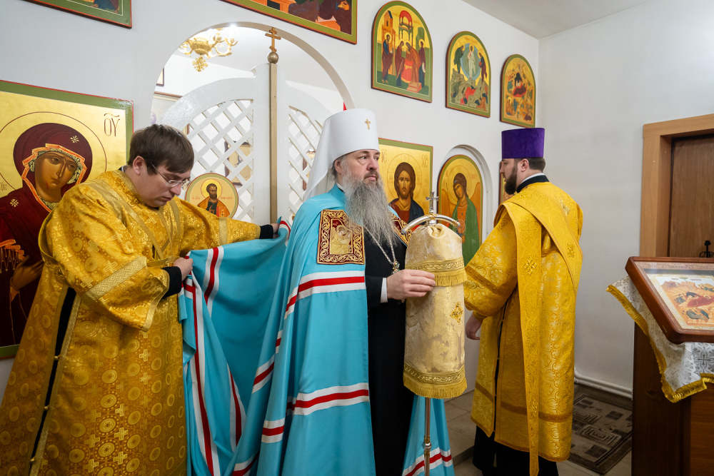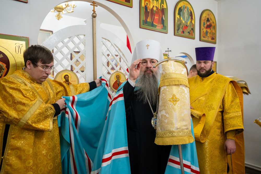 Его Высокопреосвященству сослужили настоятель Богоявленской церкви села Рамзай иерей Даниил Попков и иерей Георгий Насонов, диакон Богдан Яворский и протодиакон Константин Кузьминых.