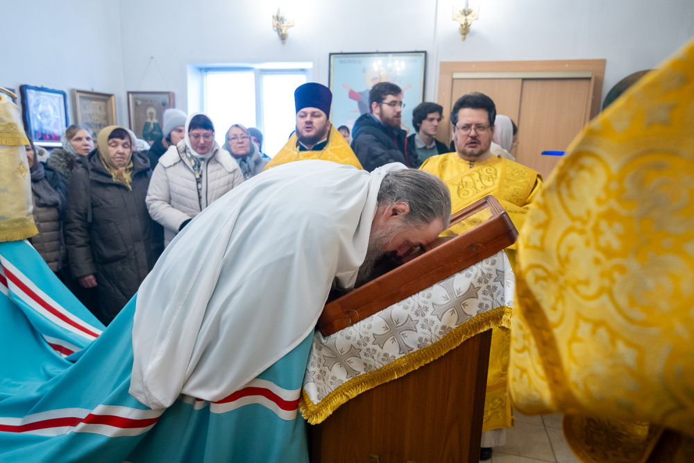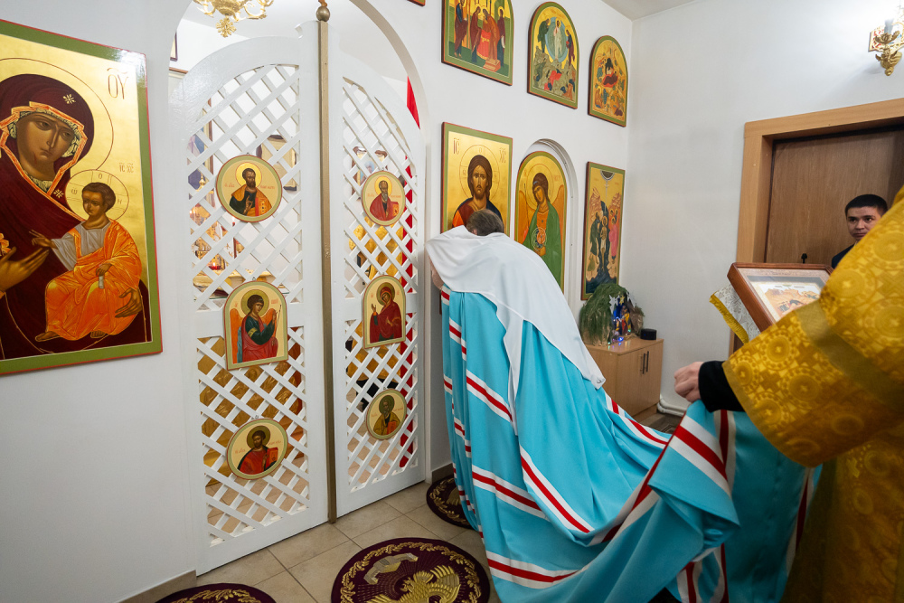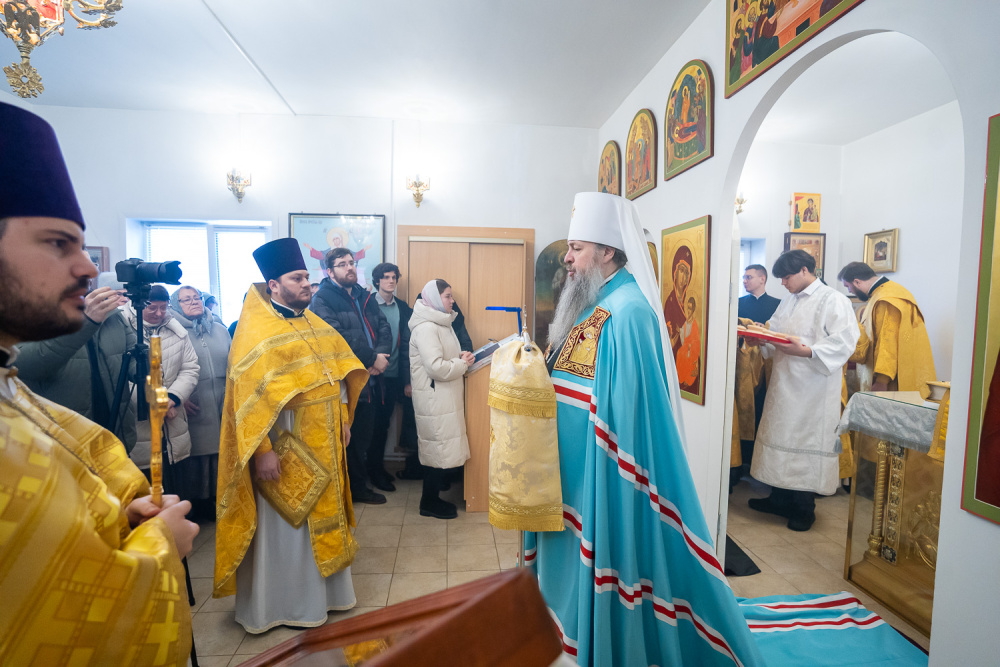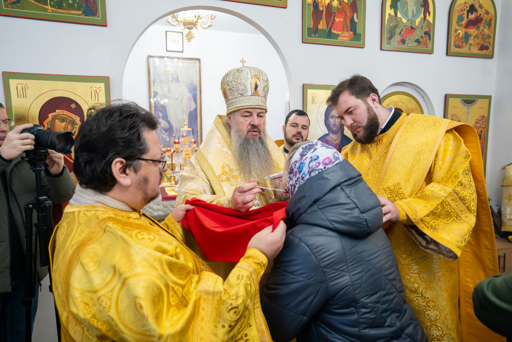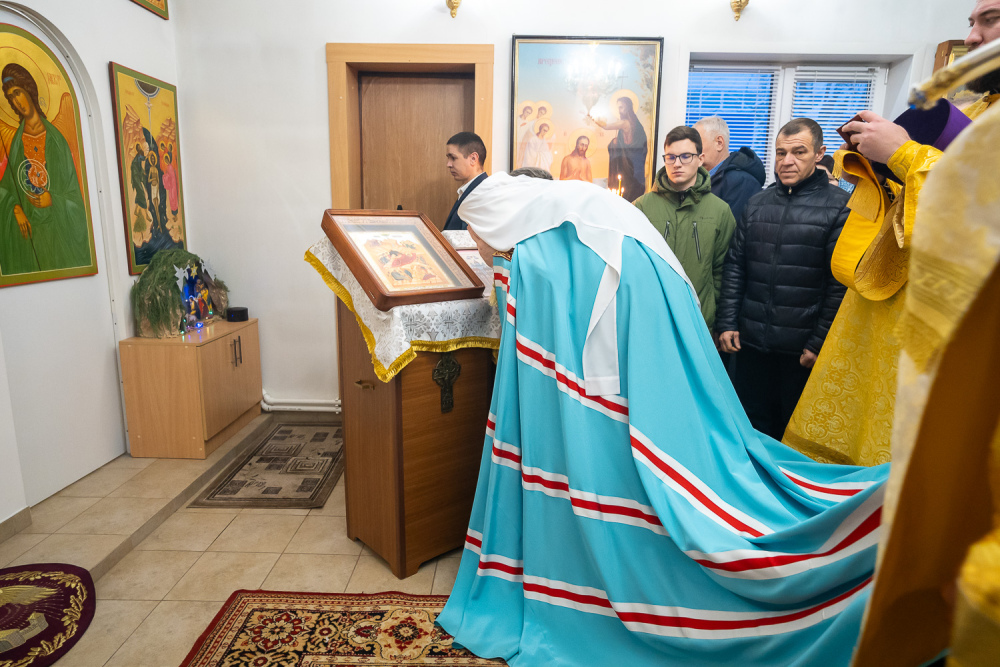 Его Высокопреосвященству сослужили настоятель Богоявленской церкви села Рамзай иерей Даниил Попков и иерей Георгий Насонов, диакон Богдан Яворский и протодиакон Константин Кузьминых.