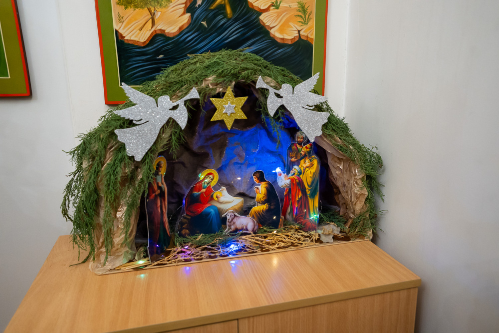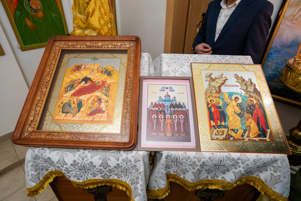 По заамвонной молитве было совершено славление перед иконой Рождества Христова.