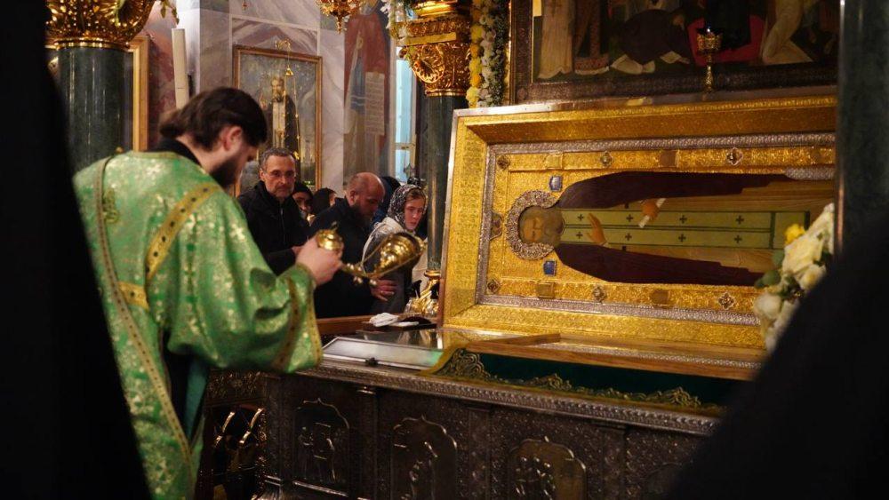За богослужением вместе с многочисленными паломниками и прихожанами молились настоятельница Дивеевской обители игумения Сергия (Конкова) с сестрами монастыря, настоятельница Крестовоздвиженского монастыря Нижнего Новгорода игумения Филарета (Гажу), настоятельница арзамасского Николаевского монастыря игумения Филарета (Шевченко) и другие настоятельницы обителей Русской Православной Церкви.