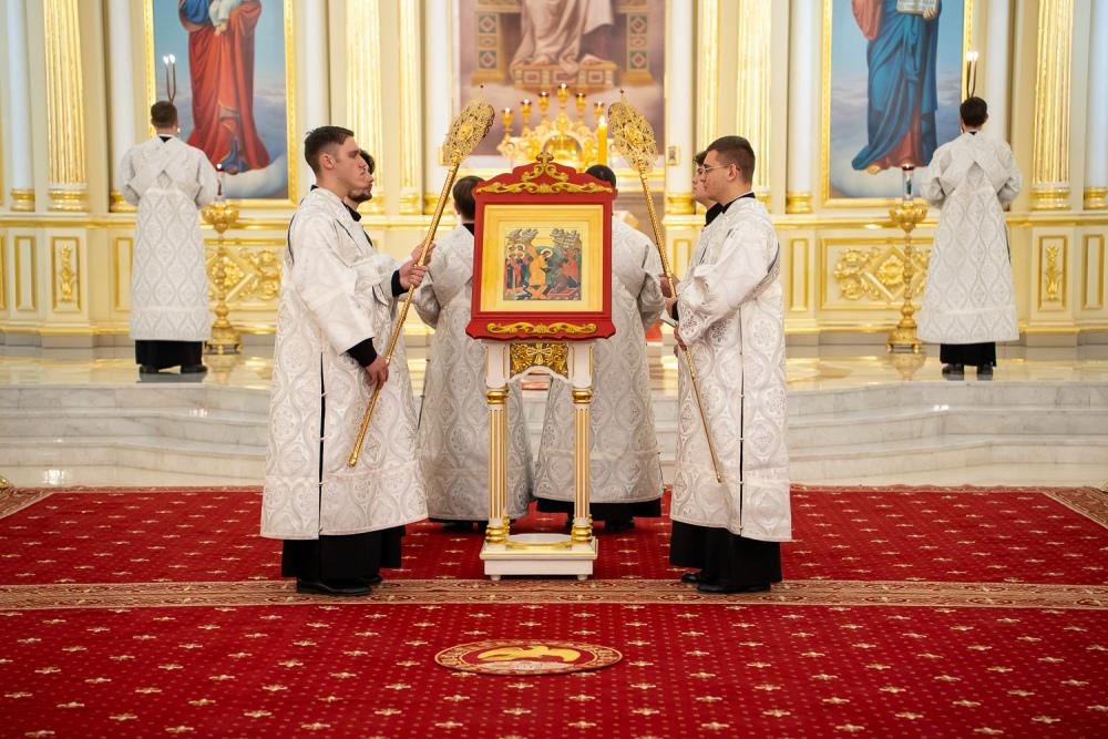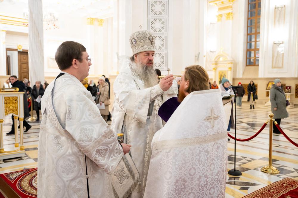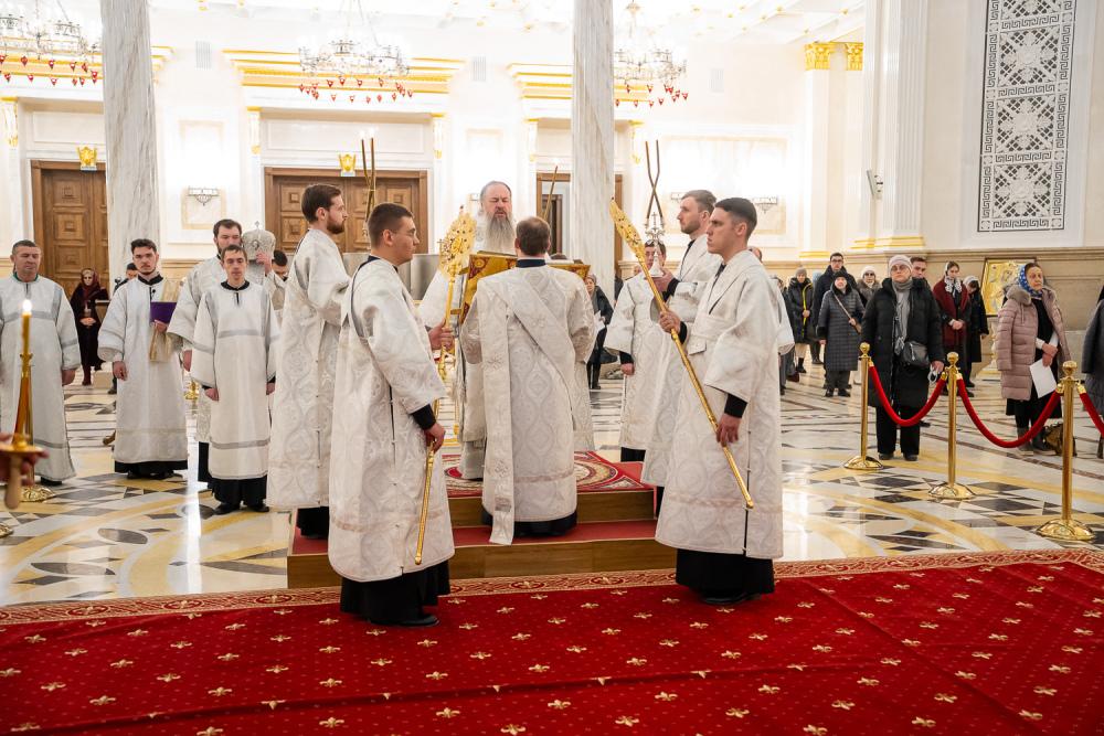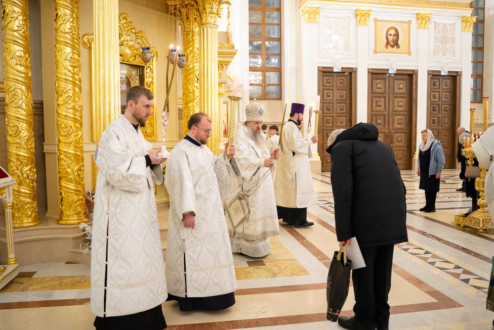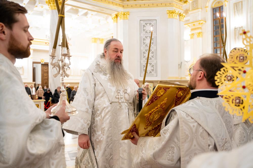 Его Высокопреосвященству сослужили ключарь Спасского кафедрального собора иерей Николай Батищев, протоиерей Владимир Ольхов, иереи Евгений Климчев и Георгий Насонов, диаконы Богдан Яворский, Кирилл Вейго, Евгений Белохвостиков, Георгий Дементьев и Никита Черных.