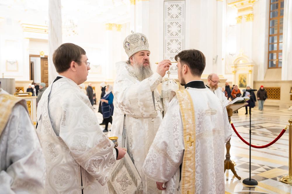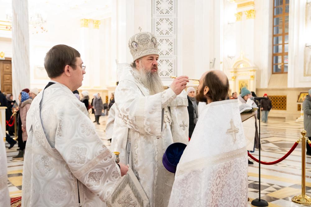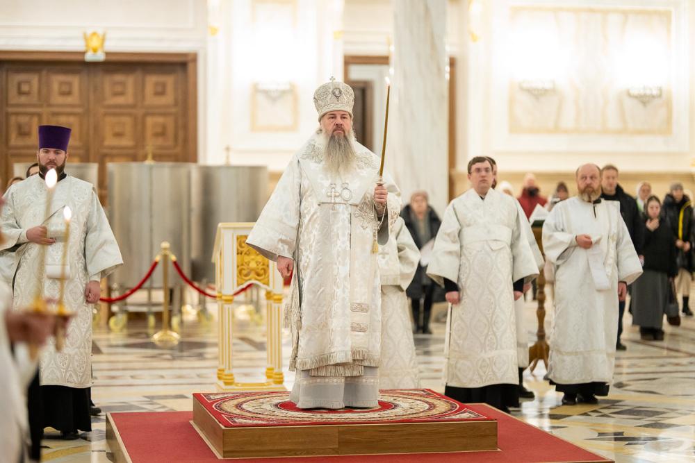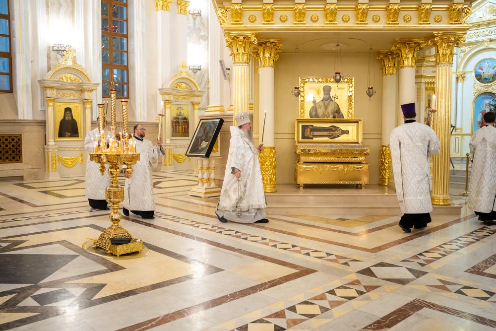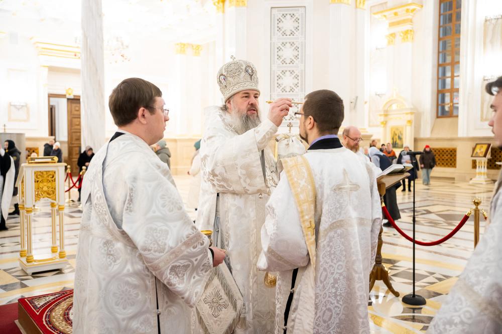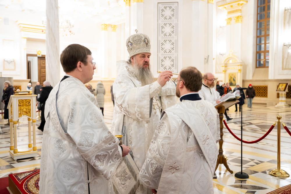 Его Высокопреосвященству сослужили ключарь Спасского кафедрального собора иерей Николай Батищев, протоиерей Владимир Ольхов, иереи Евгений Климчев и Георгий Насонов, диаконы Богдан Яворский, Кирилл Вейго, Евгений Белохвостиков, Георгий Дементьев и Никита Черных.