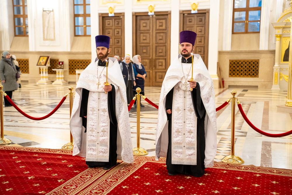 Богослужебные песнопения исполнил хор Спасского кафедрального собора под управлением регента Ольги Горшеневой.