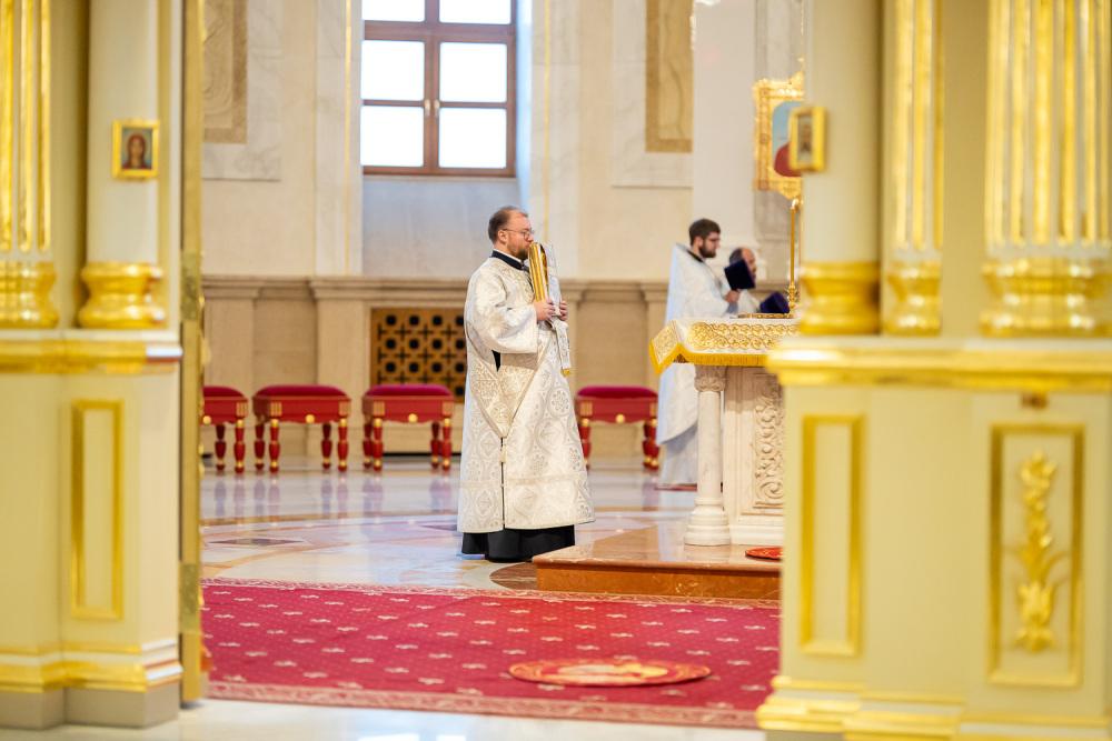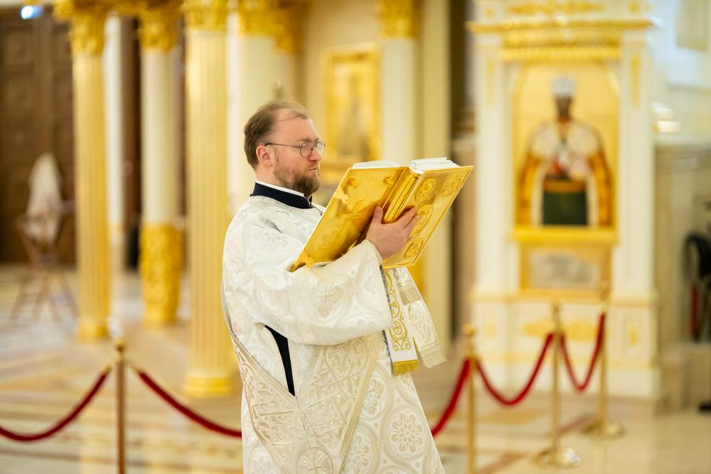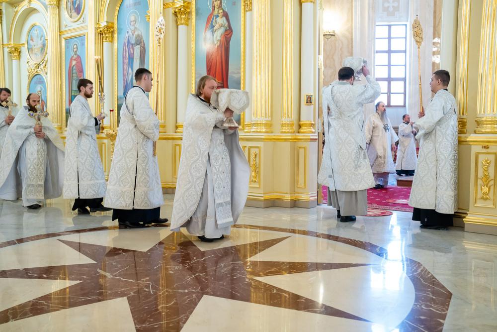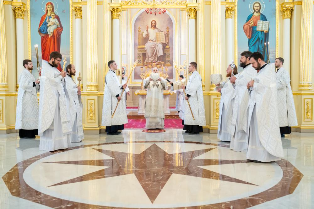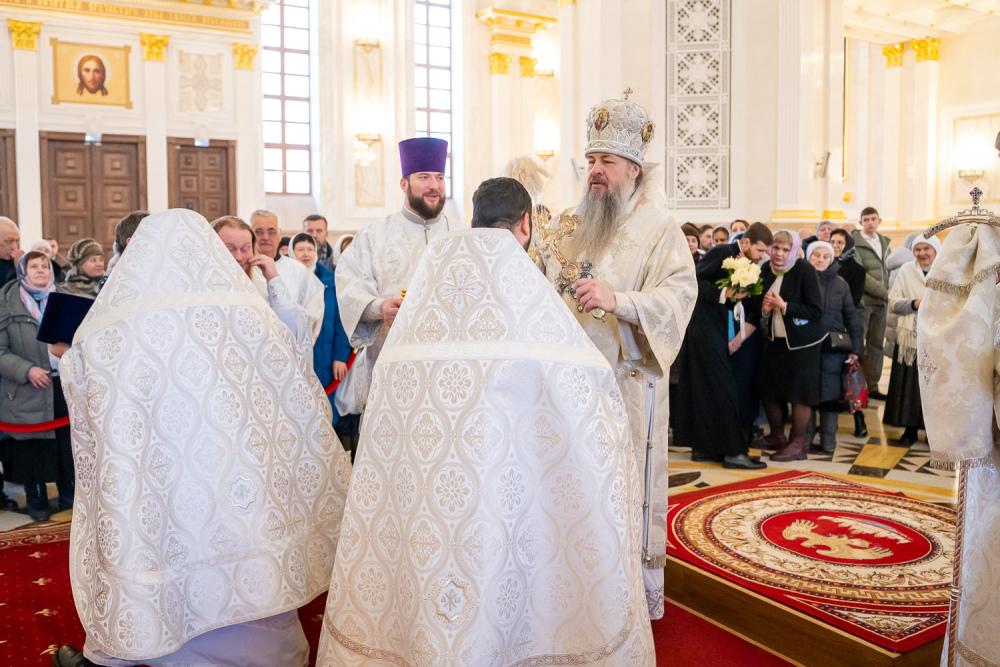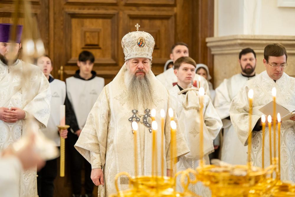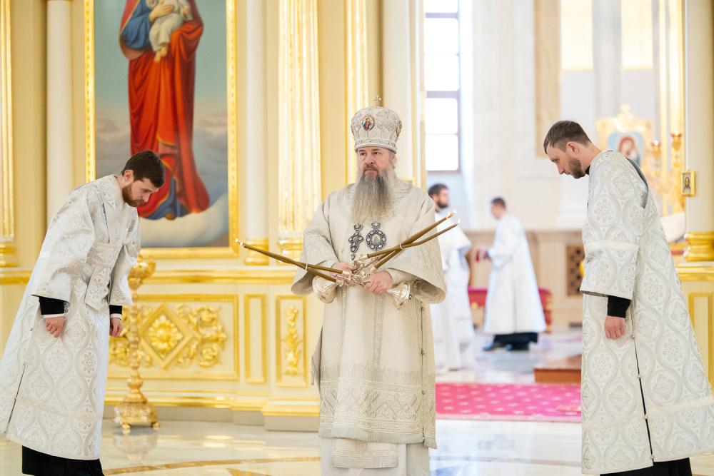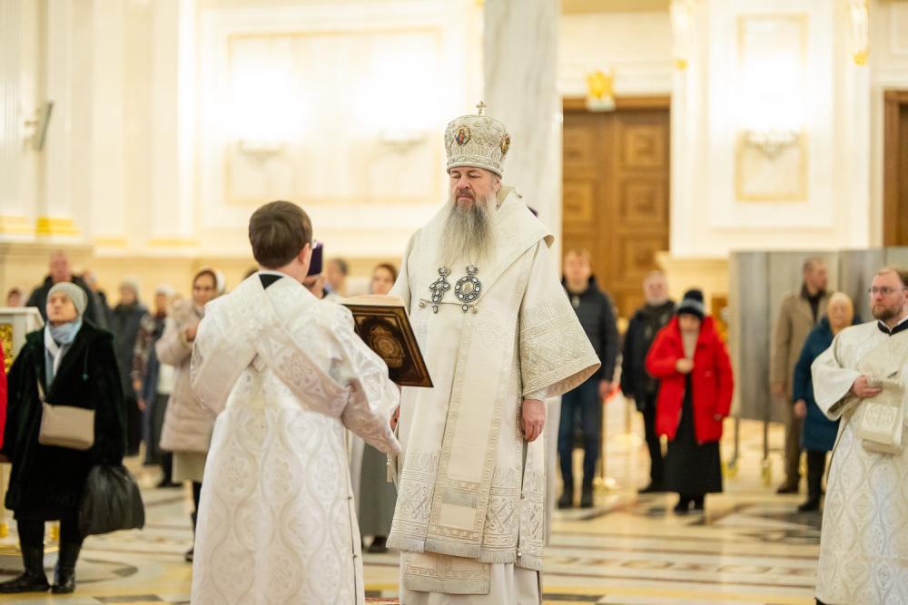 Его Высокопреосвященству сослужили ключарь Спасского кафедрального собора иерей Николай Батищев, протоиерей Владимир Ольхов, иереи Сергий Иванов, Евгений Климчев и Георгий Насонов, диаконы Богдан Яворский, Кирилл Вейго, Иоанн Сидоров, Георгий Дементьев и Никита Черных.