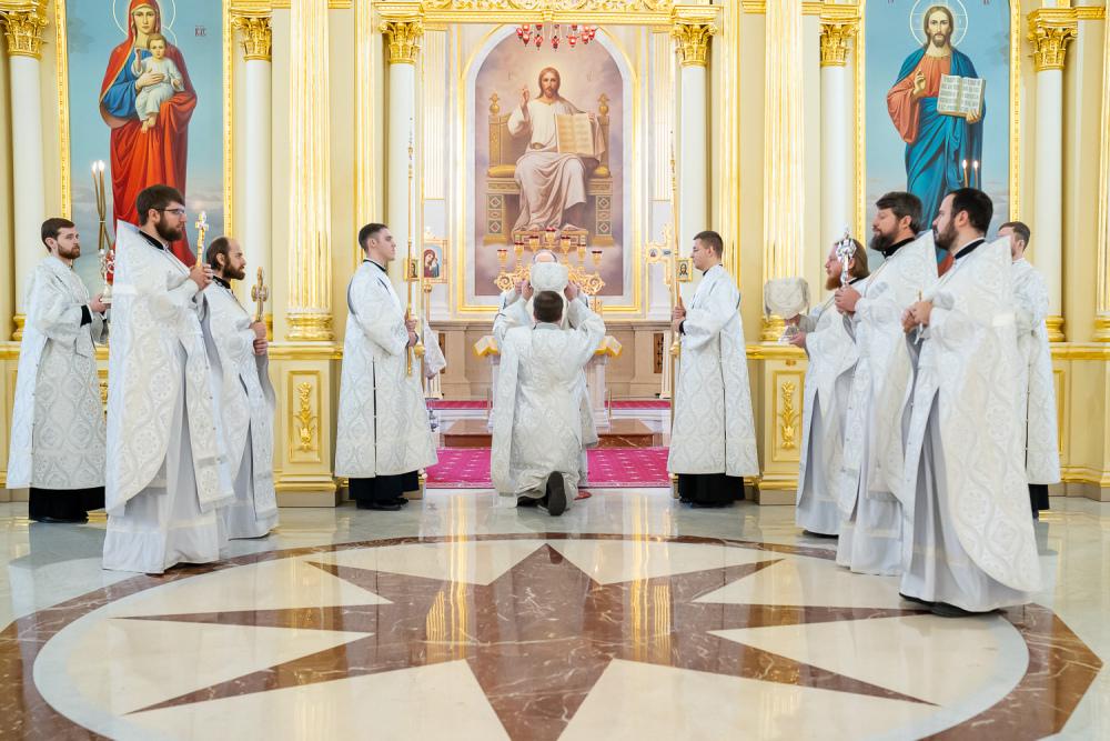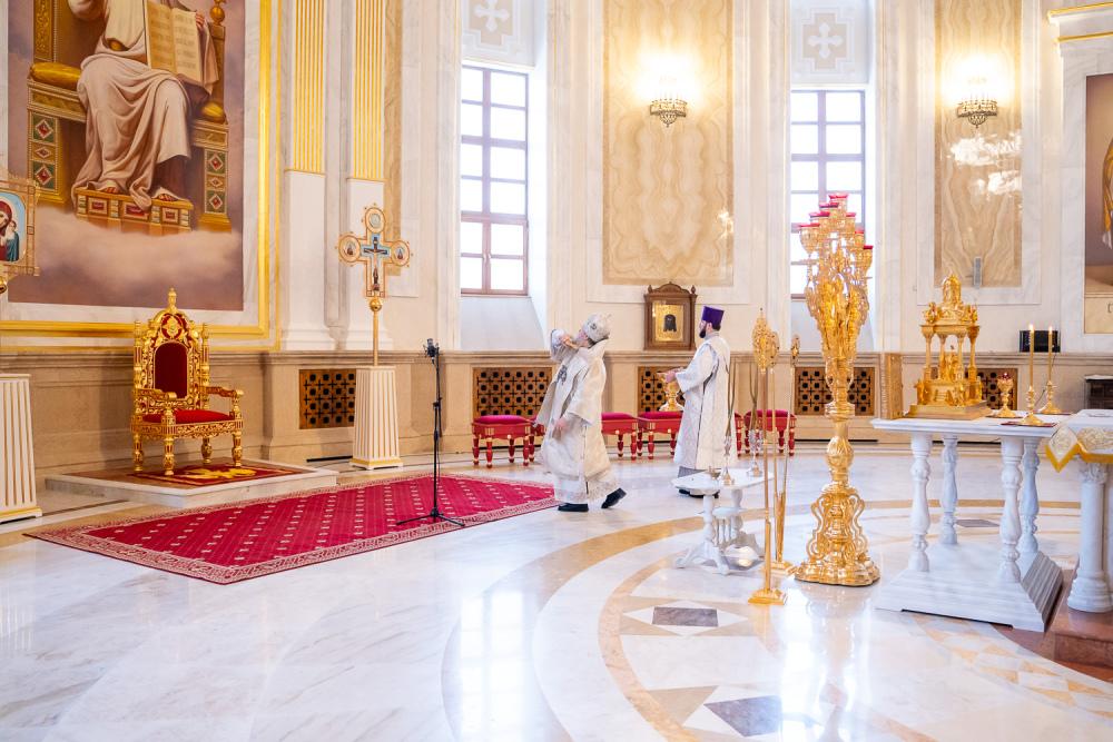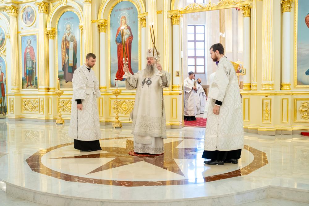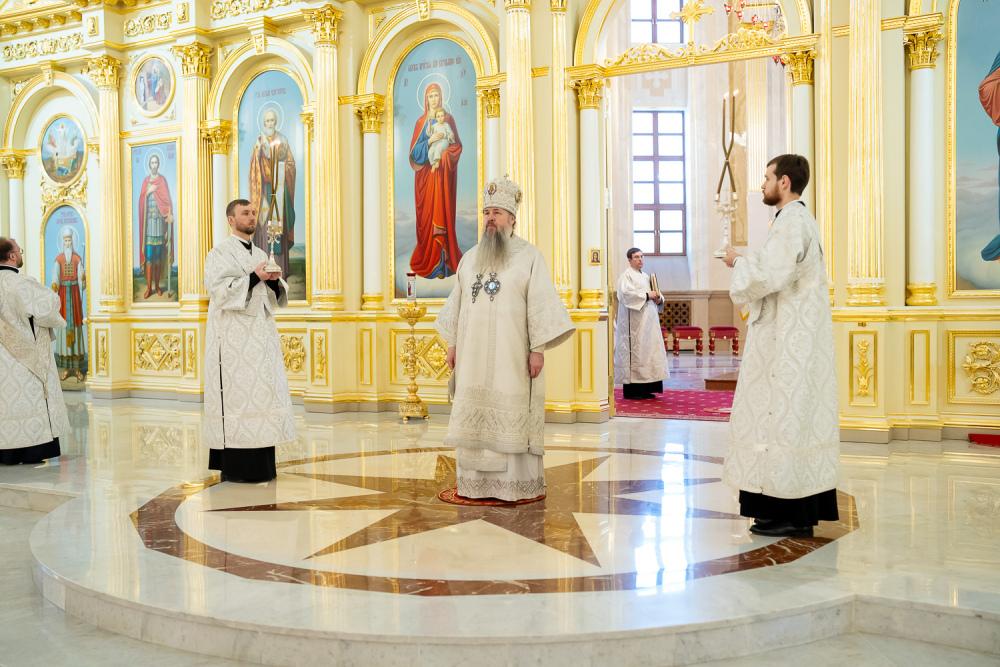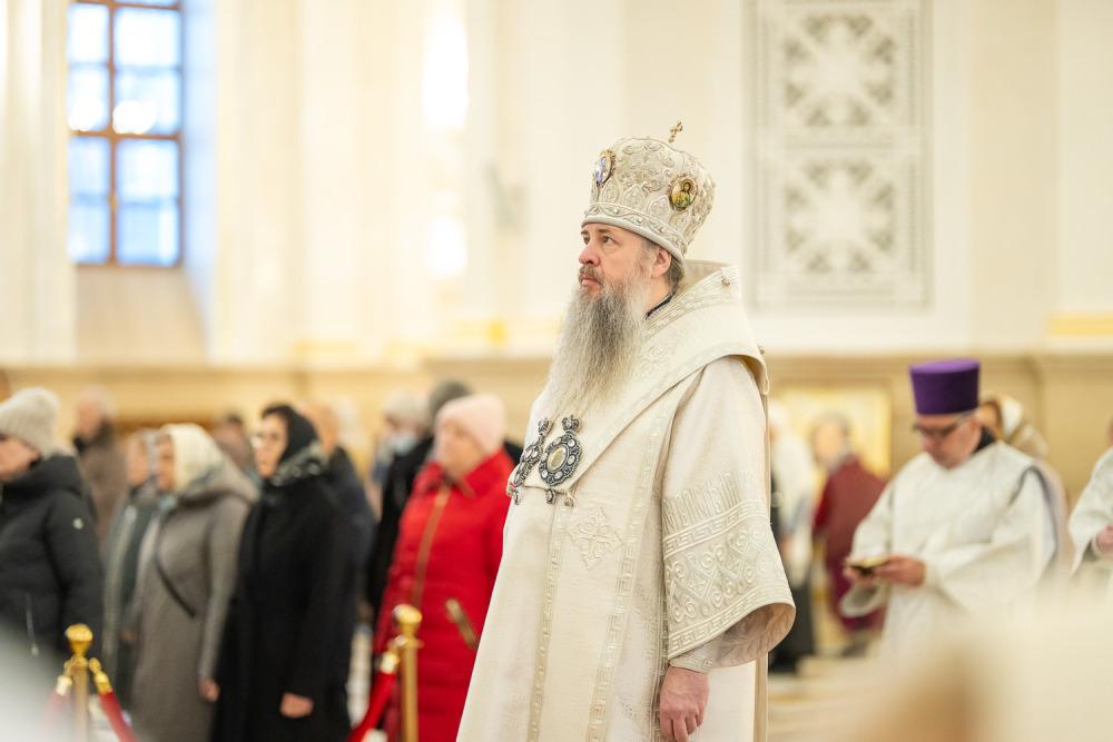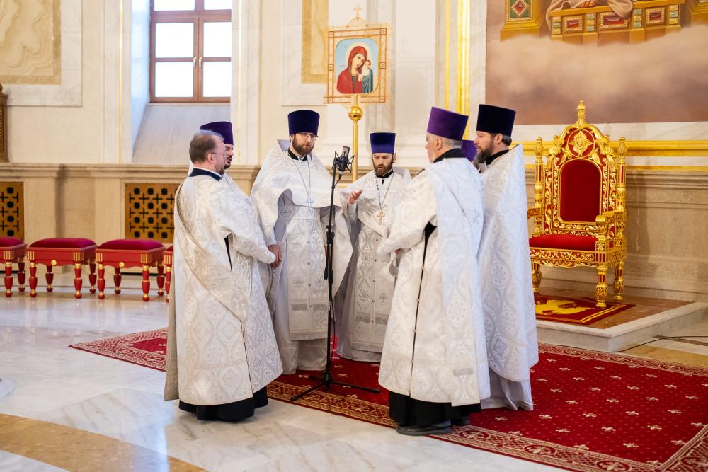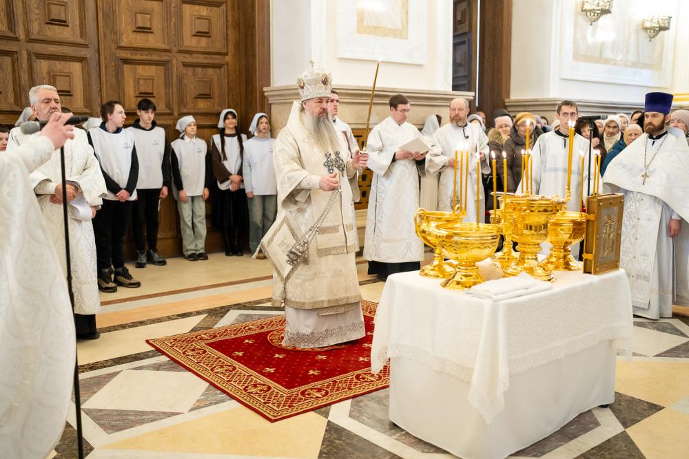 Его Высокопреосвященству сослужили ключарь Спасского кафедрального собора иерей Николай Батищев, протоиерей Владимир Ольхов, иереи Сергий Иванов, Евгений Климчев и Георгий Насонов, диаконы Богдан Яворский, Кирилл Вейго, Иоанн Сидоров, Георгий Дементьев и Никита Черных.