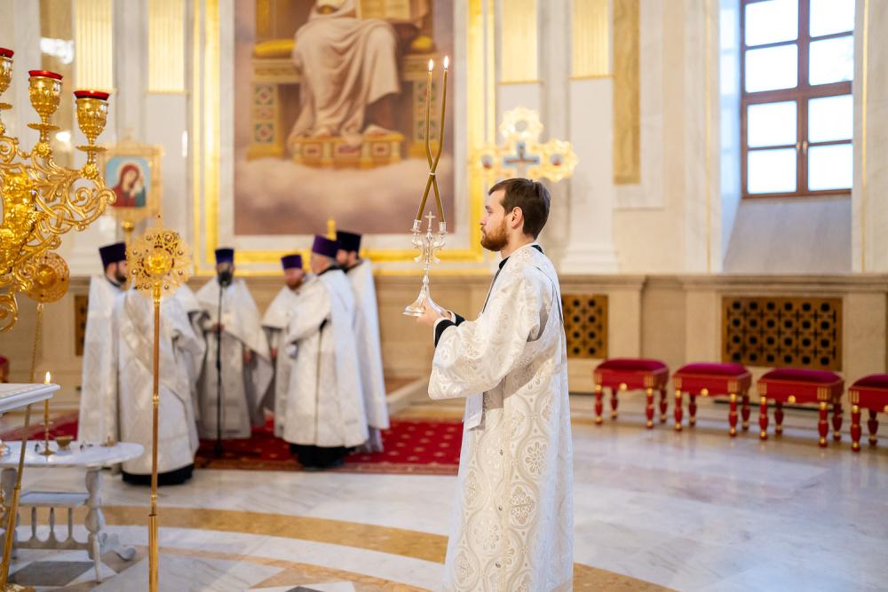 Богослужебные песнопения исполнил хор Спасского кафедрального собора под управлением регента Ольги Горшеневой.