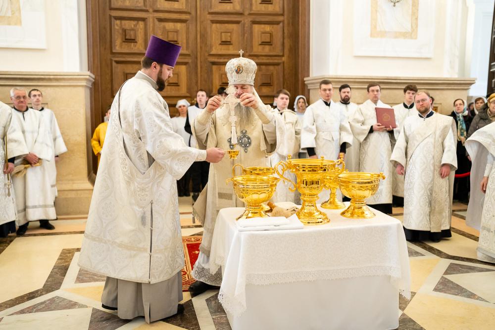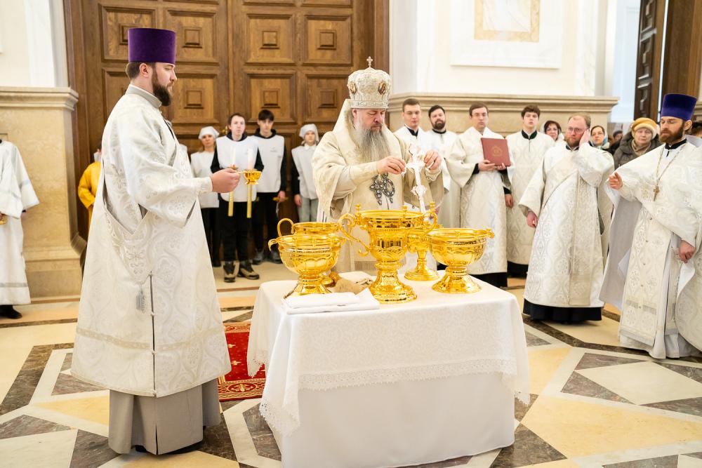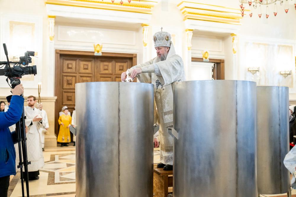 По заамвонной молитве правящий архипастырь совершил чин великого освящения воды.