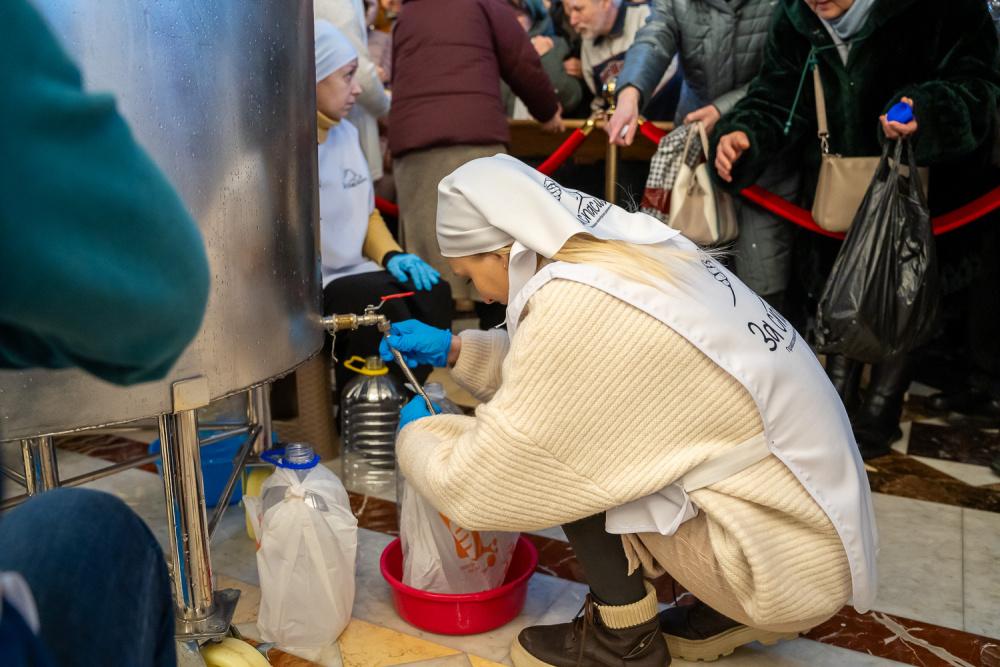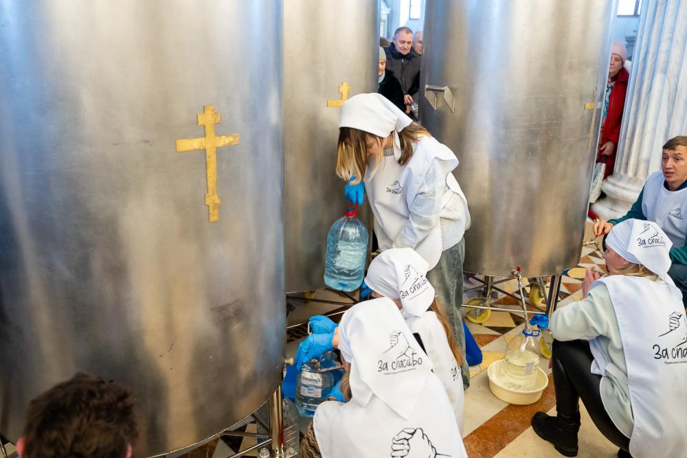 На протяжении всего дня в Спасском кафедральном соборе организована раздача святой воды верующим. В раздаче воды помогают волонтеры движения «За спасиБо», созданного при отделе по делам молодежи Пензенской епархии.