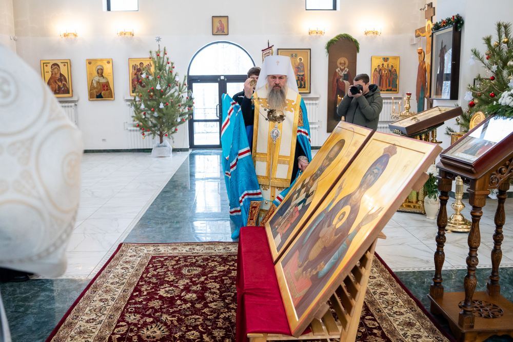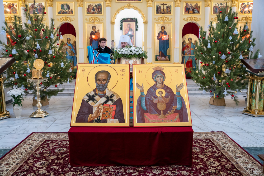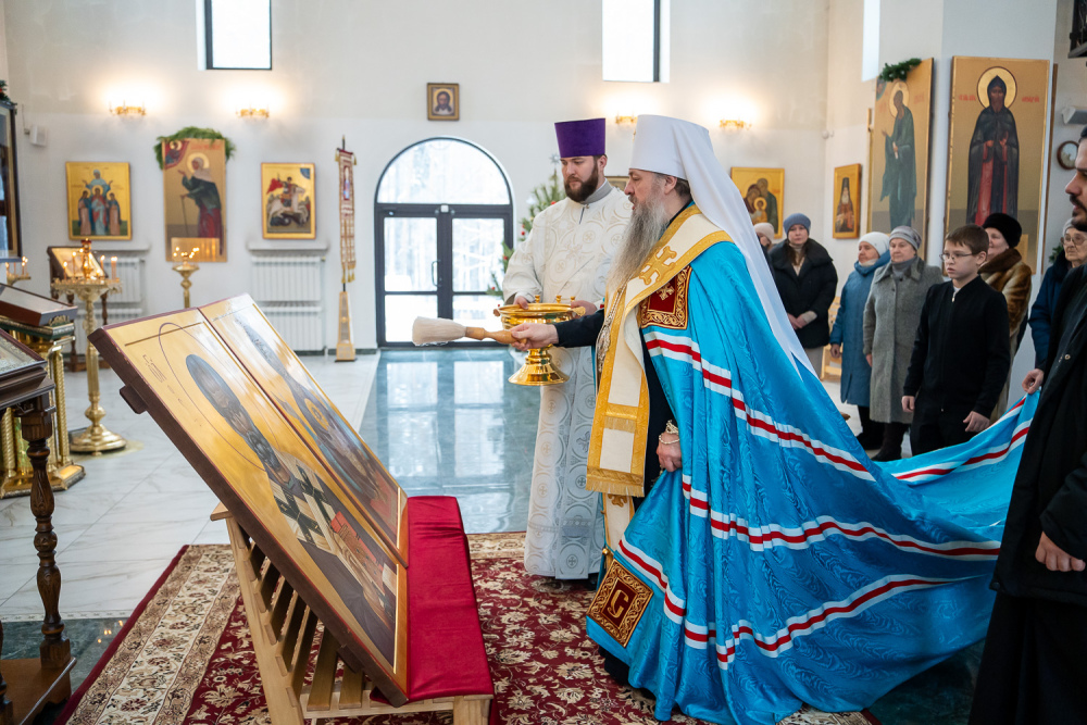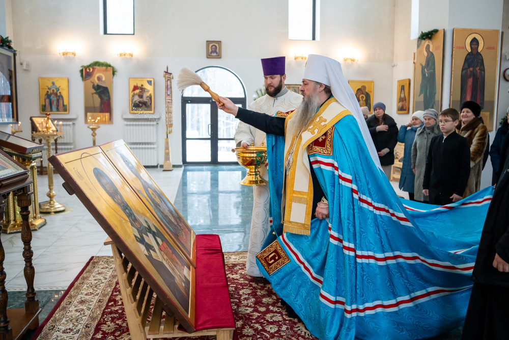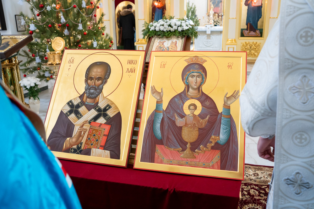 После этого в храме во имя преподобного Серафима Саровского митрополит Серафим совершил чин освящения новых икон для этого храма: образа Божией Матери «Неупиваемая Чаша» и образа святителя Николая, архиепископа Мирликийского, чудотворца.