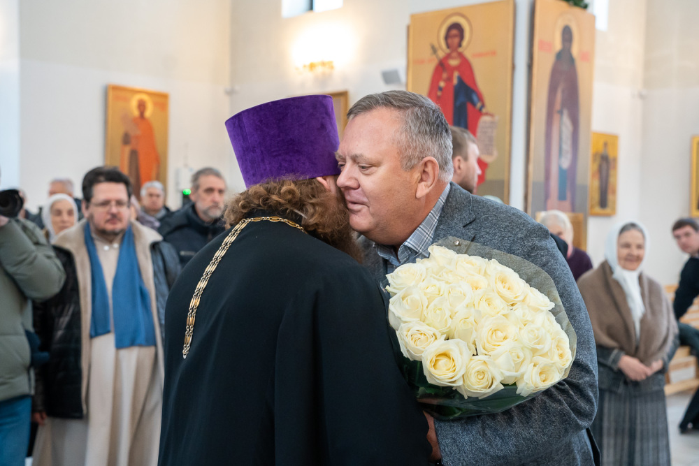 Глава Пензенской митрополии поздравил присутствующих с праздником Собора Иоанна Крестителя и со знаменательным событием – освящением новых икон для храма: «От всего сердца хочу поблагодарить Андрея Владимировича и его организацию за то, что они внесли солидный дар на благоукрашение храма, и сердечно благодарю Нину Викторовну за такой ее вклад в память о своем сыне.
