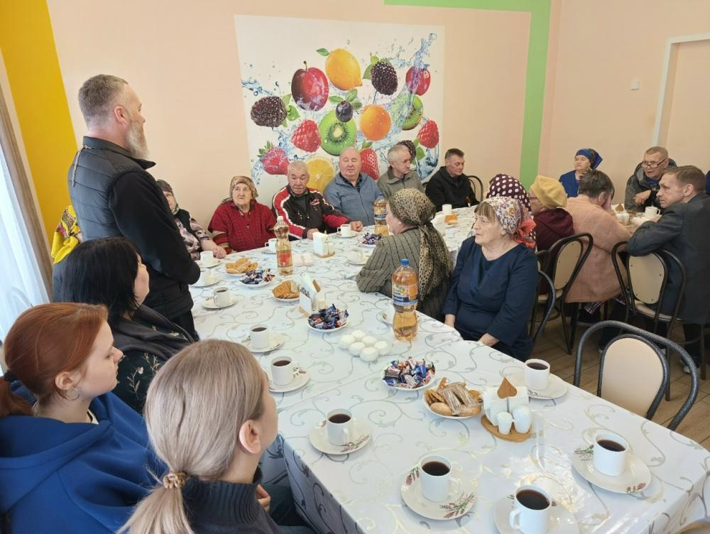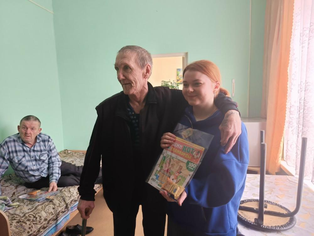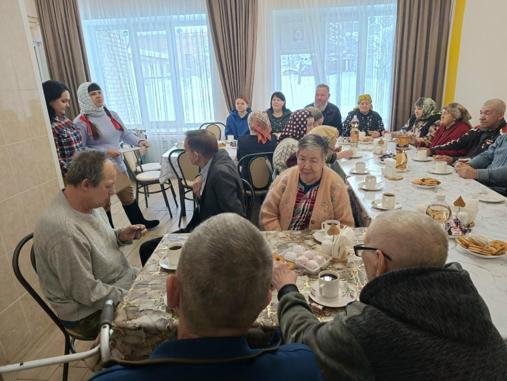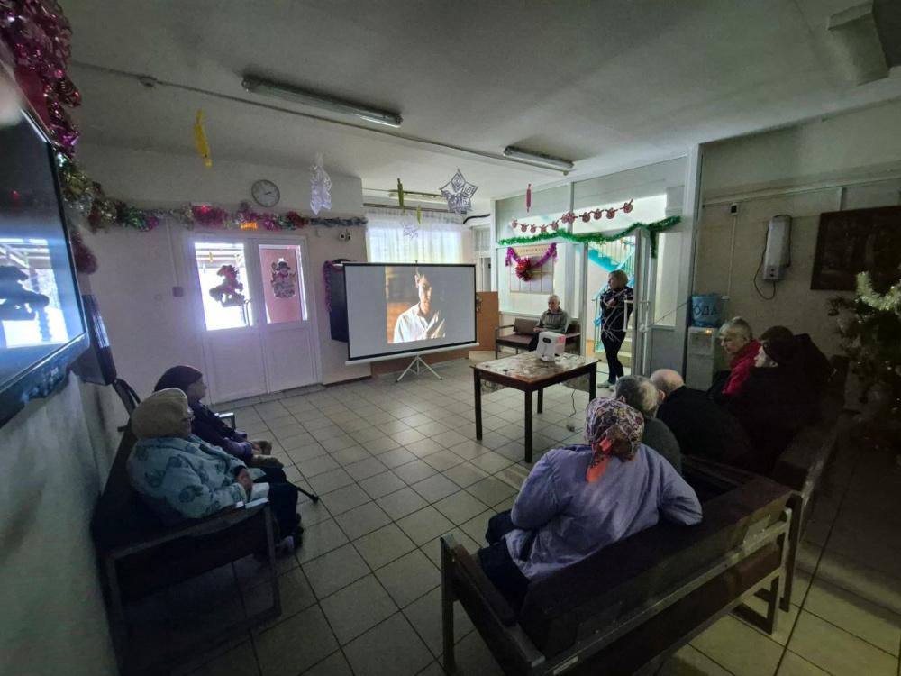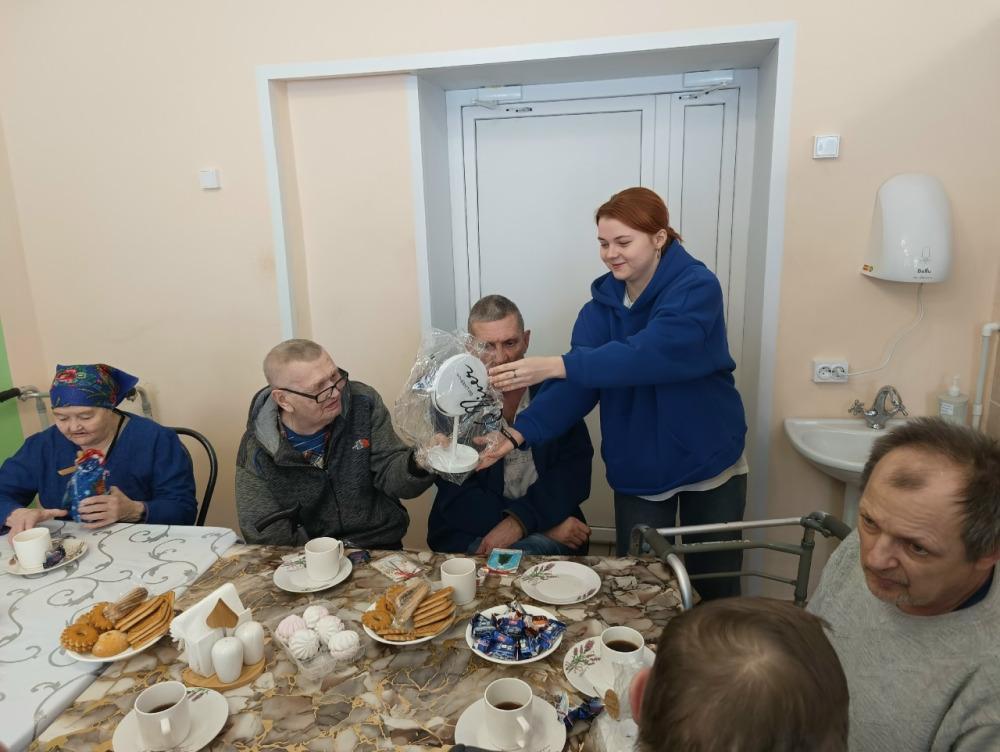 После вступительного слова руководителя волонтерского объединения священника Илии Иванова состоялось совместное с проживающими чаепитие, во время которого волонтеры провели викторину на знание известных советских фильмов и их героев. Каждому проживающему были вручены подарки, приобретенные на средства, собранные в ходе рождественской акции «Елка добра».