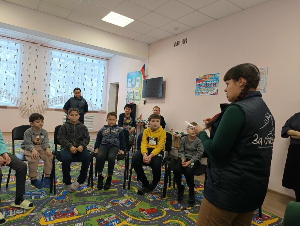 Главная тема встречи — «Сила доброго слова». Волонтеры поговорили с воспитанниками о том, какой силой обладает доброе слово, и о том, как важно подобрать нужные слова для человека, оказавшегося в трудной ситуации. Также провели для ребят веселую развлекательную программу с дискотекой при участии ростовой куклы — гигантского медведя, после чего подарили всем воспитанникам сладкие подарки и кружки, которые вместе с ними раскрасили.