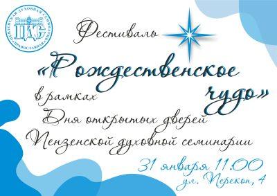 31 января 2026 года в Пензенской духовной семинарии (ул. Перекоп, 4) в рамках Дня открытых дверей состоится фестиваль «Рождественское чудо». Начало в 11:30, вход свободный.