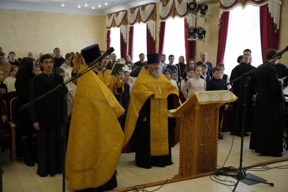 Мероприятие началось с молебна, который возглавил ректор духовной школы протоиерей Николай Грошев.