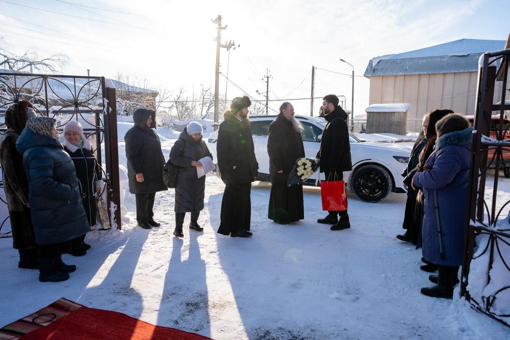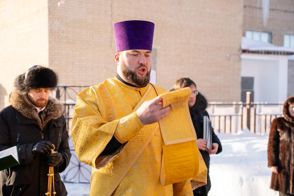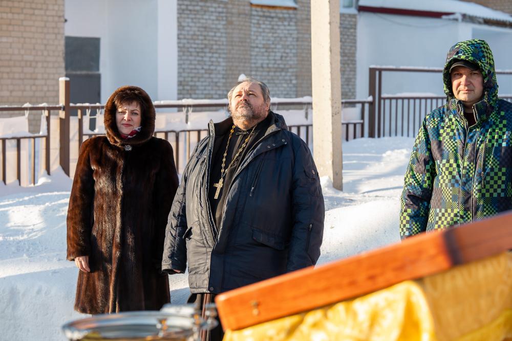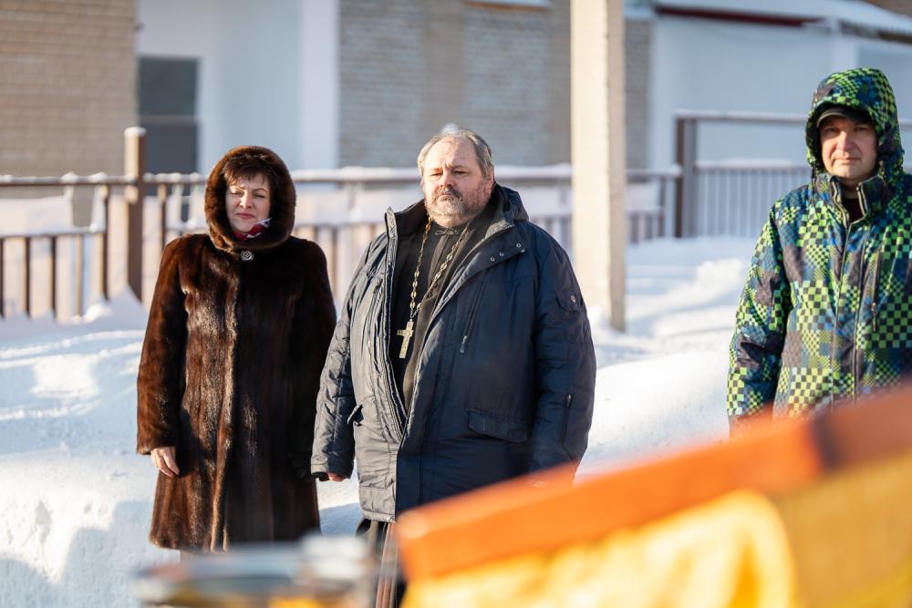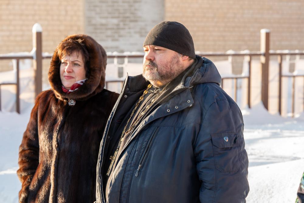 По окончании чина освящения Высокопреосвященный владыка Серафим обратился к собравшимся и поблагодарил маму бойца, имя которого увековечено на колоколе, и коллектив завода, на котором колокола были отлиты: «Для всех нас это святое благородное дело, и я надеюсь, что теперь эти колокола будут призывать не одно поколение людей приходить в храм на службы и радоваться тому, что голосом Церкви мы с вами всегда привлекаемы и призываемы к Богу. Храни вас Господь, Божией помощи Вам!»