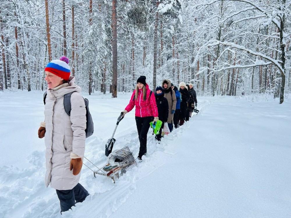 1 февраля 2026 года после Божественной литургии воспитанники воскресной школы «Пеликан» храма преподобного Серафима Саровского города Заречный отправились в лес вместе с педагогами, родителями и настоятелем храма иереем Виктором Сторожевым.