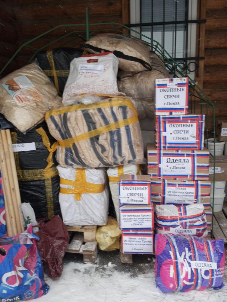 Участие в сборах гуманитарного груза приняли Троицкий женский монастырь города Пензы и прихожане пензенских храмов во имя преподобного Серафима Саровского, мучеников Адриана и Наталии, Введенского храма в Веселовке, храма во имя святых мучениц Веры, Надежды, Любови и матери их Софии, святых благоверных князя Петра и княгини Февронии Муромских, Успенского храма в поселке Победа, храмов в честь иконы Божией Матери «Призри на смирение», храма Рождества Христова села Кижеватово, храма Рождества Пресвятой Богородицы села Мичурино, молитвенного дома во имя апостола Андрея Первозванного, а также члены Братства во имя святителя Иннокентия и благотворительный фонд «Неравнодушные сердца». Активное участие в сборе гуманитарной помощи приняли жители поселка Ахуны.