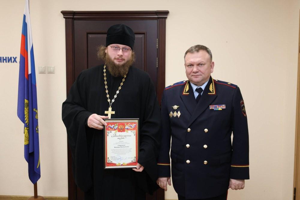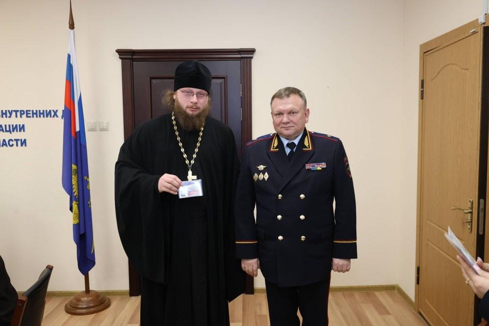 Руководитель ведомства торжественно вручил членам совета удостоверения. Иерей Виктор Сторожев был также награжден благодарственной грамотой УМВД России по Пензенской области.