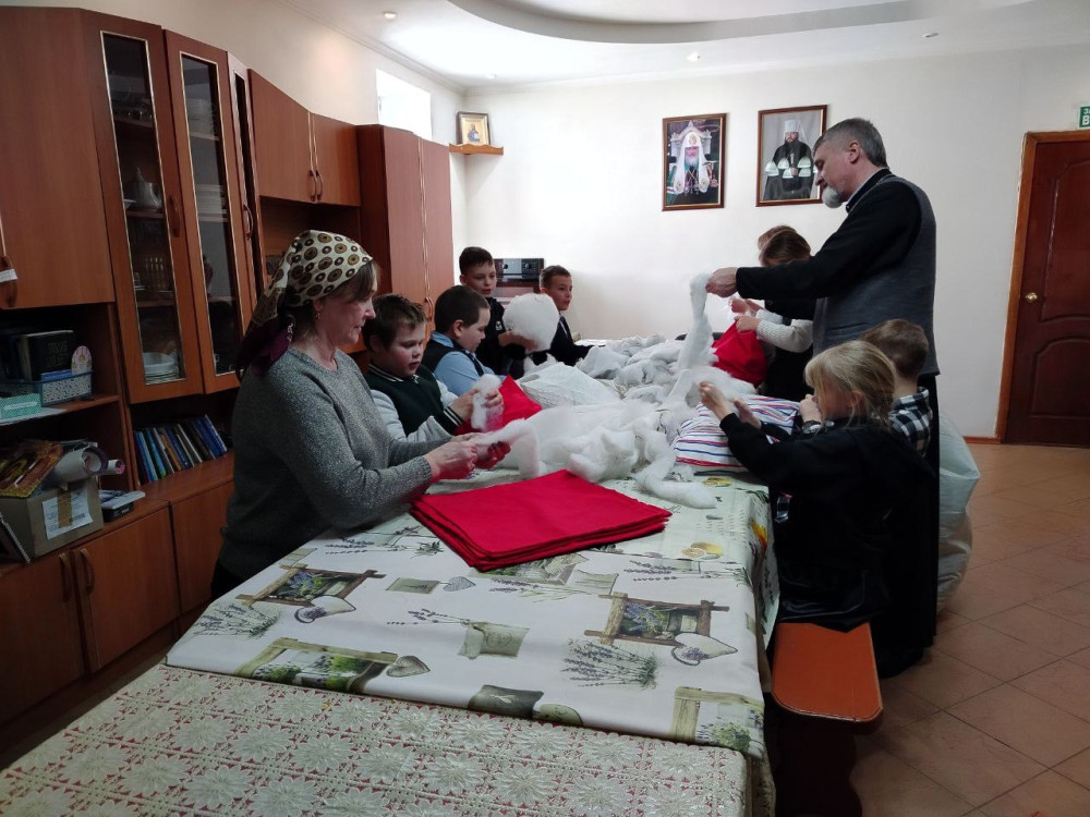 После беседы дети помогли набить наполнителем подушки для прифронтовых госпиталей.