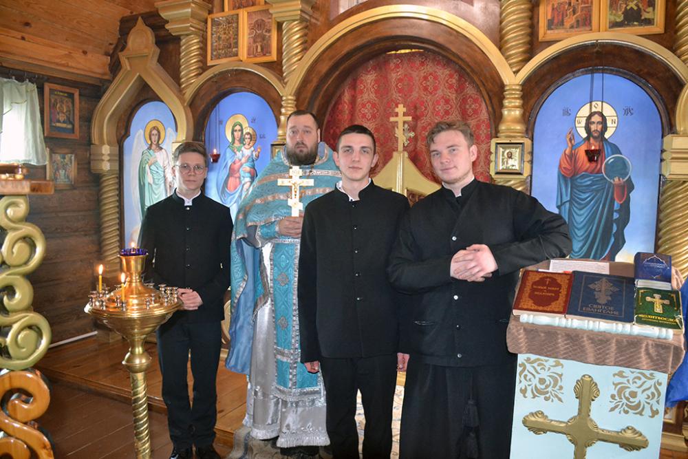 Песнопения литургии исполнили студенты Пензенской духовной семинарии Серафим Федин, Сергей Черных и Сергей Алексеев. В алтаре священнику помогал Андрей Токарев.