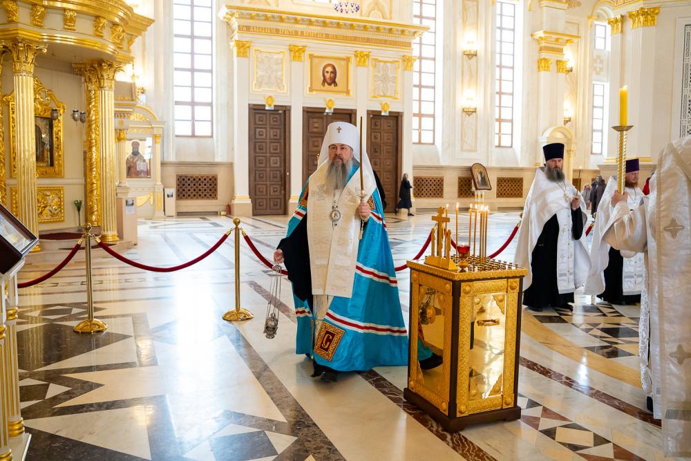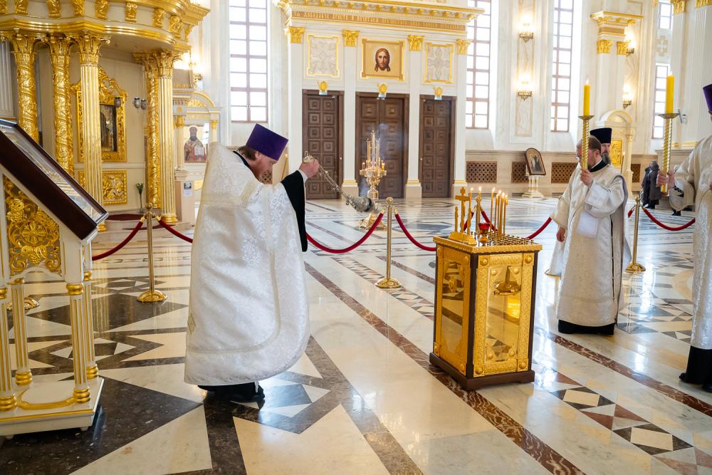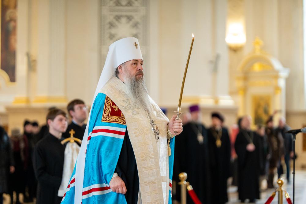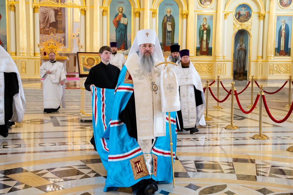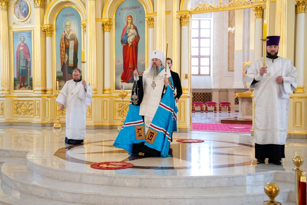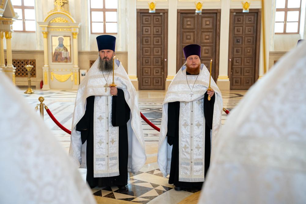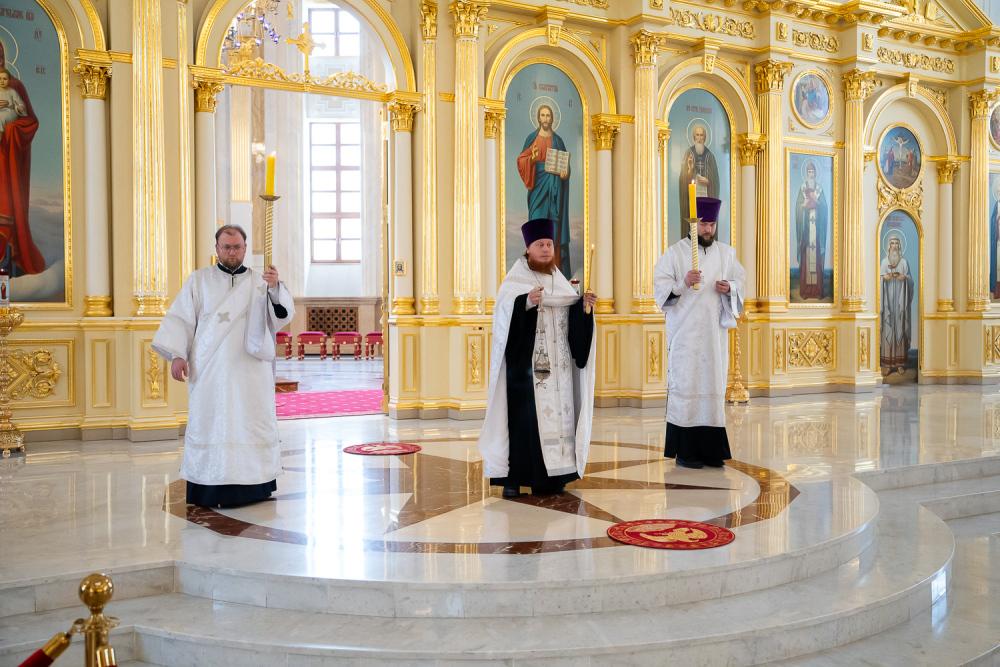 Его Высокопреосвященству сослужили ключарь Спасского кафедрального собора иерей Николай Батищев, благочинный Спасского городского округа иерей Зорин Максим, иереи Николай Пашков и Сергий Шурыгин, диаконы Богдан Яворский и Кирилл Вейго.