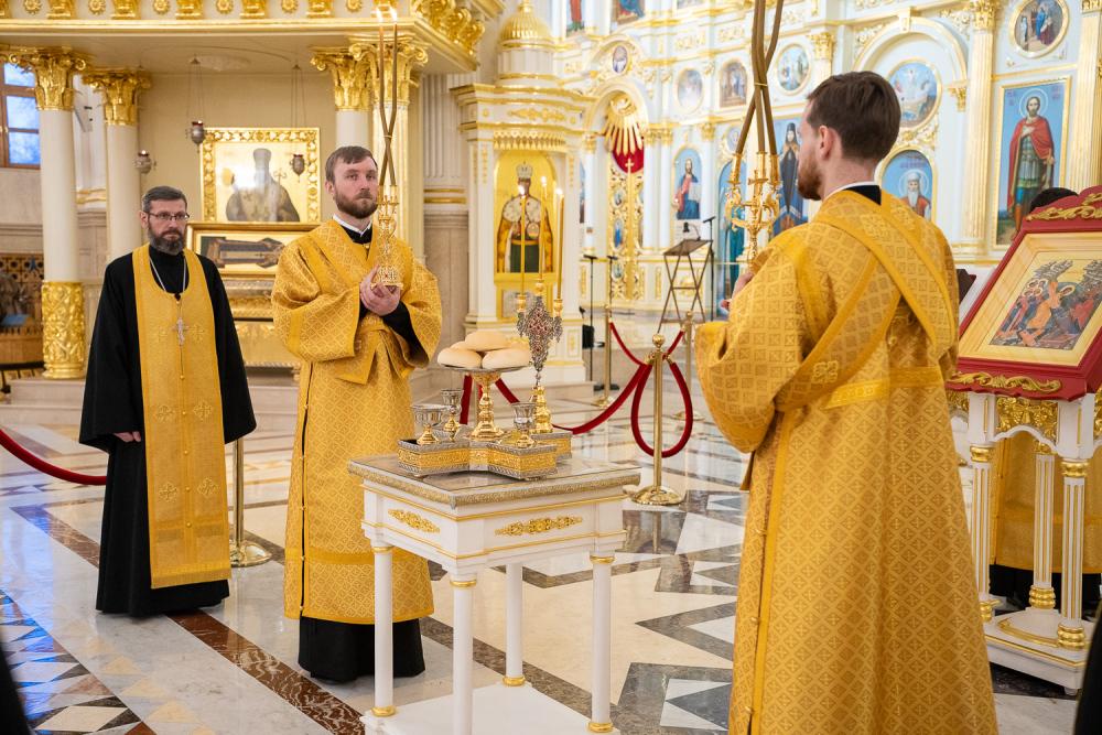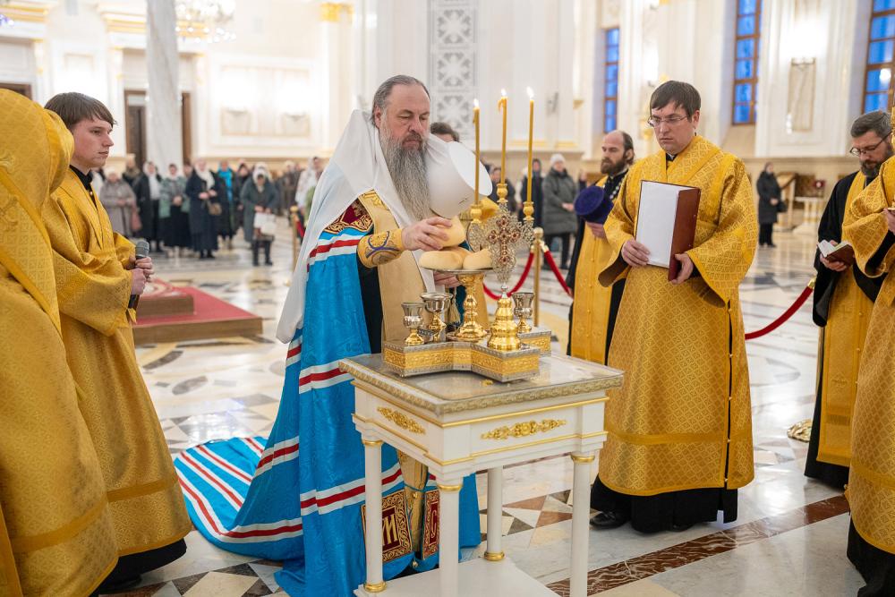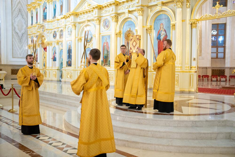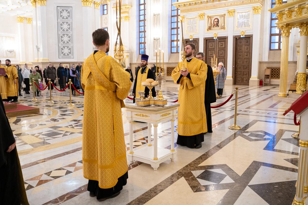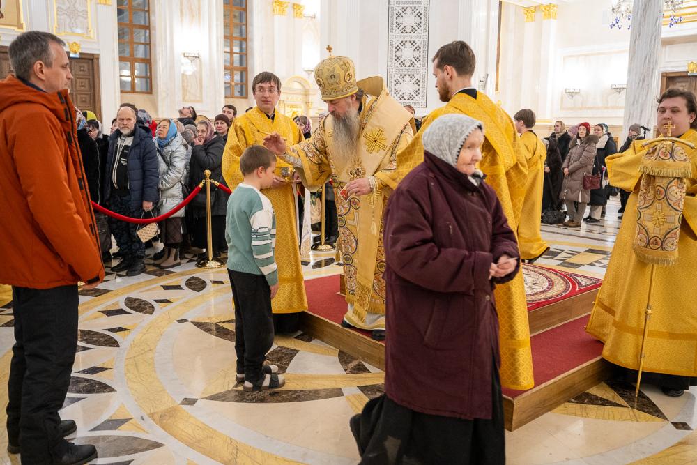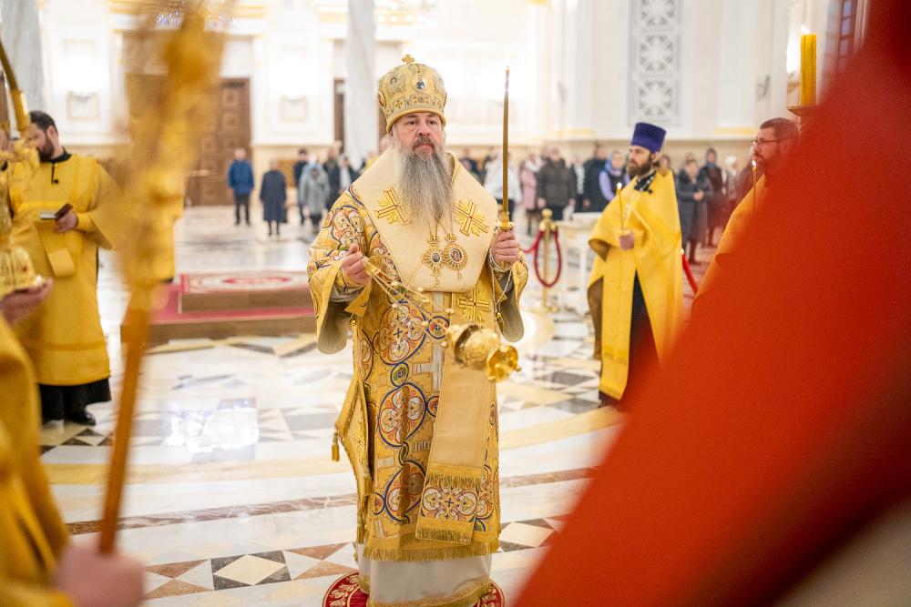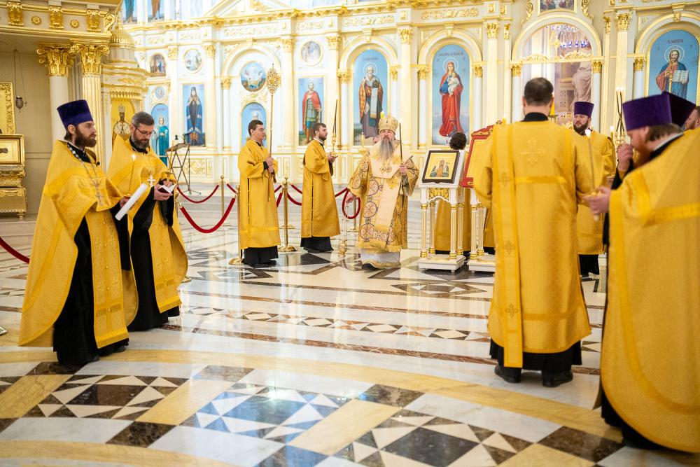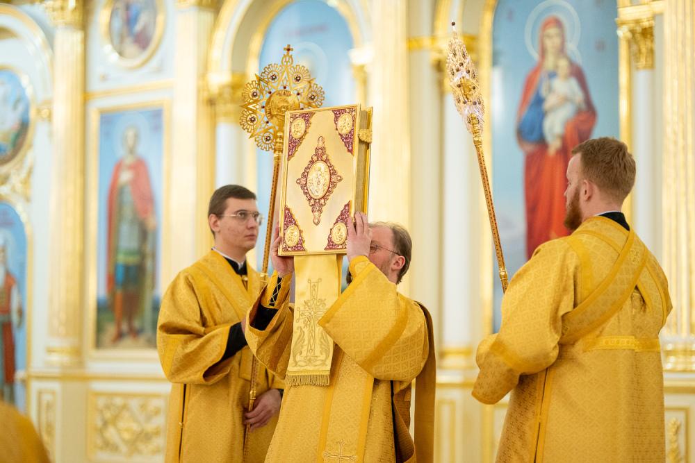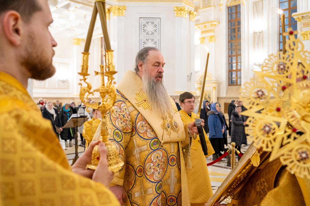 Его Высокопреосвященству сослужили ключарь Спасского кафедрального собора иерей Николай Батищев, протоиерей Владимир Ольхов, иереи Георгий Насонов и Сергий Шурыгин, диаконы Богдан Яворский, Кирилл Вейго, Георгий Дементьев и Илья Харитонов.